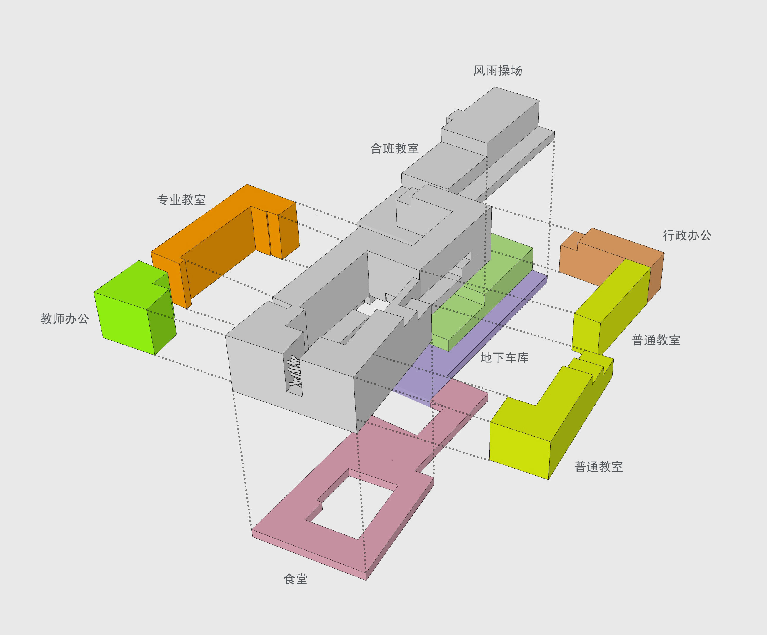 After that we solved the problems one by one, like the ventilation and lighting problem of the cafeteria, limit outdoor space, clash of the flow between students and teachers. When the problems were solved, the building become what it looked like, so it’s a reasonable outcome.