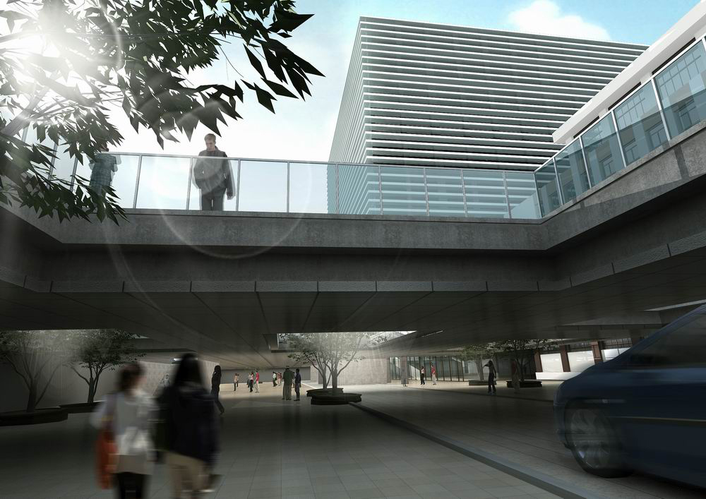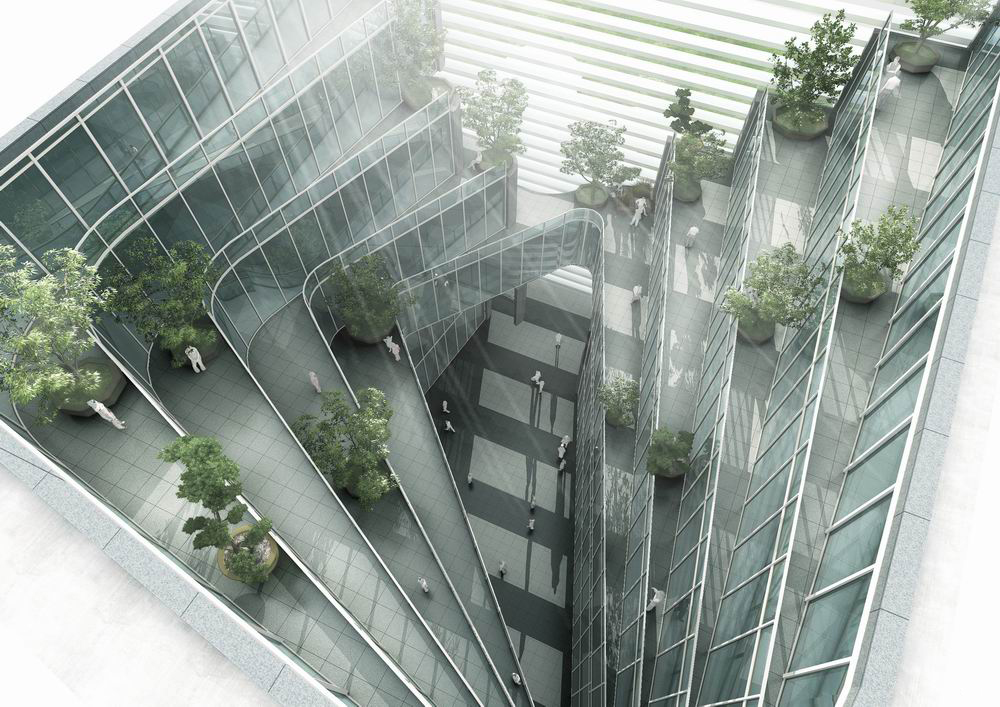 There are many trees on the square, according to our plan, the big trees will not be removed, the little trees will be removed away. The positions of the trees are the hole positions on the square. The lower part of the square can get daylighting through holes. These holes can be used as the chairs located on the square. All those of trees, chairs, stairs and corridor have composed a square of city residents with rich space, ecology and practice, open and interaction.