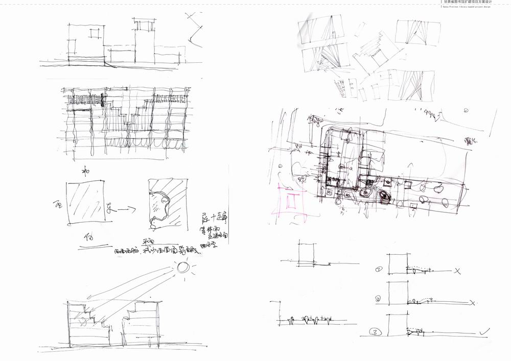 2013年4月,北京殊舍建筑参与甘肃省省图书馆公开竞标,以第一名身份中标。方案延续殊舍建筑一贯风格,分析基地和功能要求,提出需要解决的问题,问题的一步一步解决就是我们设计的过程,问题的答案就是我们的最终建筑。