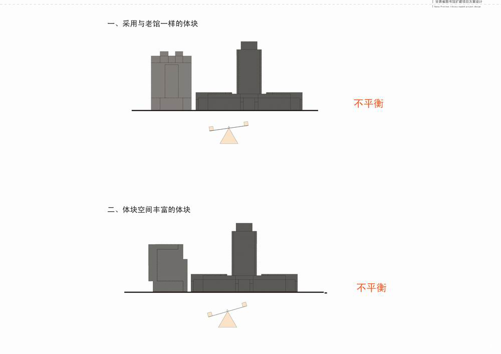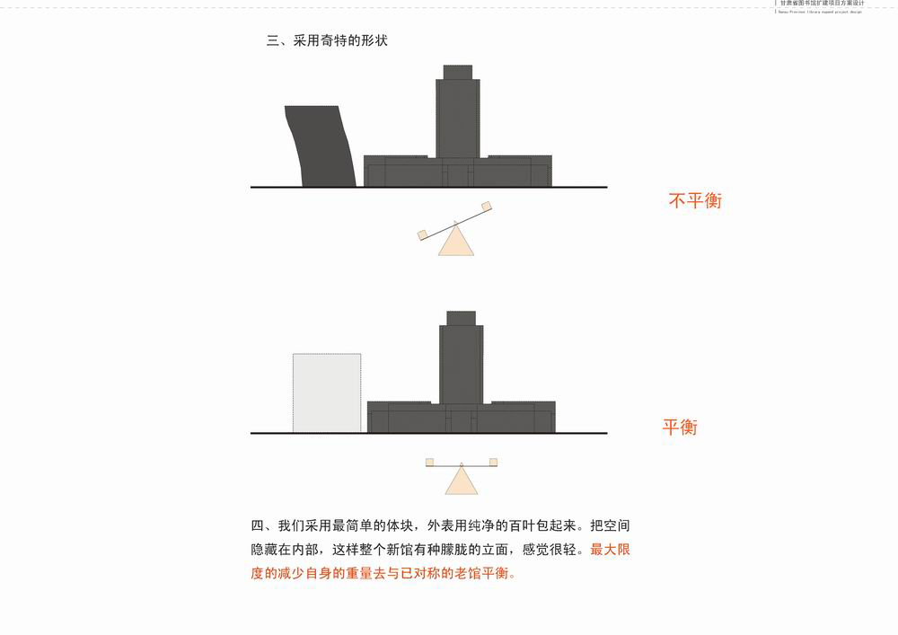 此图书馆为了与老馆平衡最大的减少自己重量。外表简单,把复杂实用的空间放在建筑内部,透过纯净的表皮可以隐约感知内部空间。