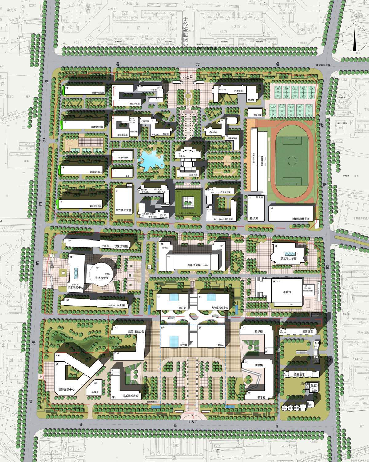 Starting from the design guiding ideology of this plan, the overall plan of Capital University of Trade and Economics presents the following characteristics: