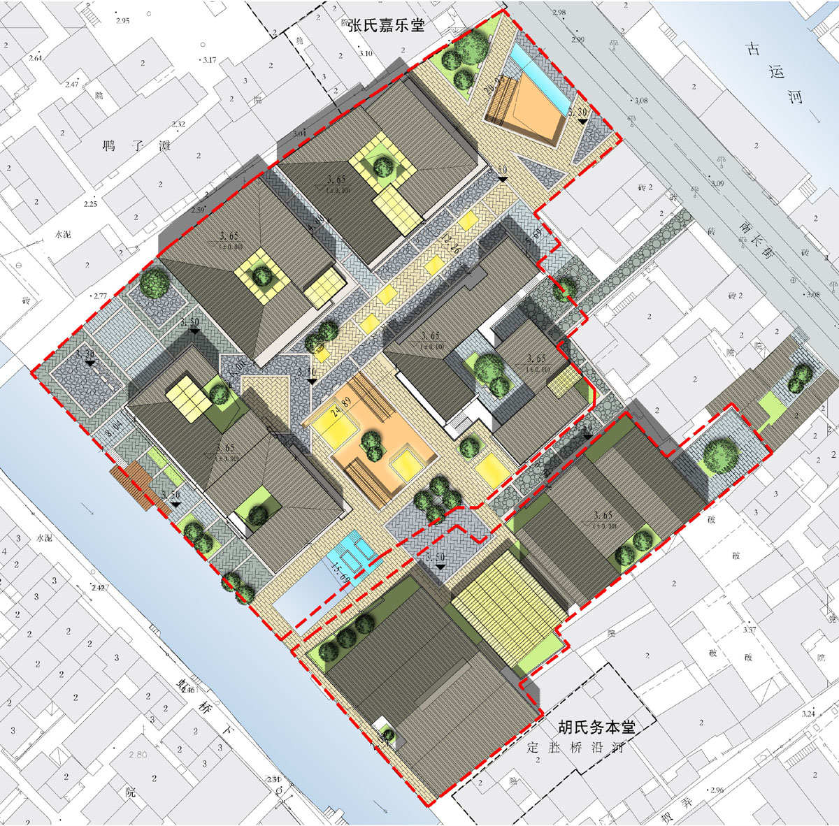 The Canal Ancient Town is located on the axis of the ancient canal, covering an area of 18.78 hectares. It is characterized by numerous landscapes such as temples, towers, rivers, streets, bridges, kilns, and workshops, creating a unique Jiangnan water alley. The "Qingming Bridge" built in the Ming Dynasty on both sides of the Feijia Canal is an important historical and cultural symbol within the neighborhood.
