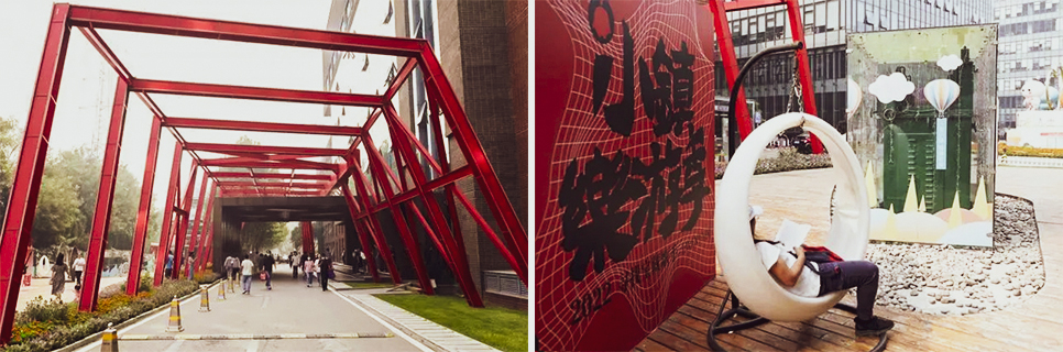 中关村东升科技园,曾经的老厂房保留了一些钢架,变成了“新潮”的通道。