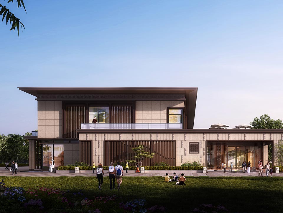 In the design, the scale of the building is not large, and attention is paid to the details, such as the treatment of Chinese architectural details such as roof eaves, cornice patterns, columns, and column bases, which also enhances the new Chinese cultural charm of the building.