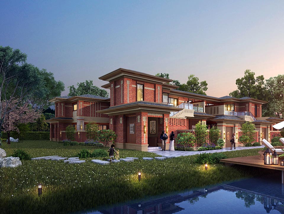 设计中建筑尺度不大,注重细部,屋顶飞檐,檐口回纹,立柱,柱础等中式建筑细节的处理,也提升建筑新中式文化韵味。