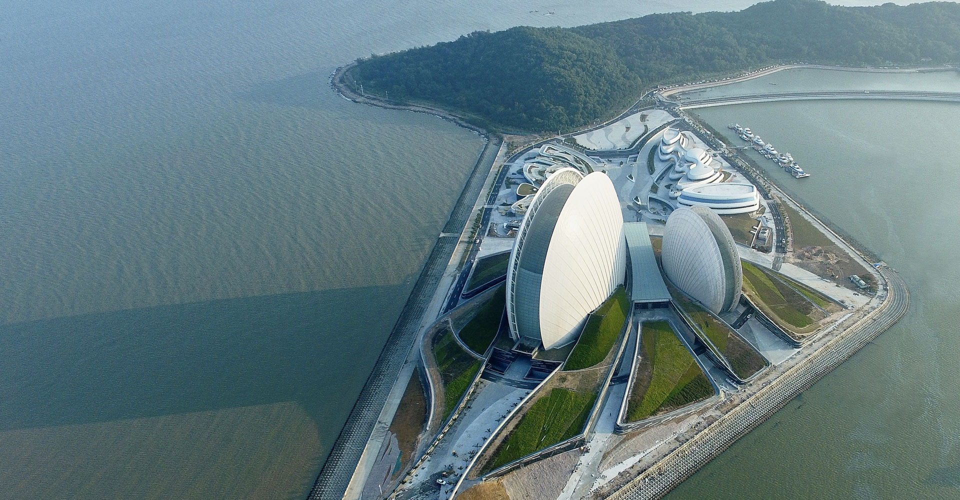 珠海大剧院(Zhuhai Grand Theater)位于广东省珠海市情侣路野狸岛海滨,是中国唯一建设在海岛上的歌剧院。