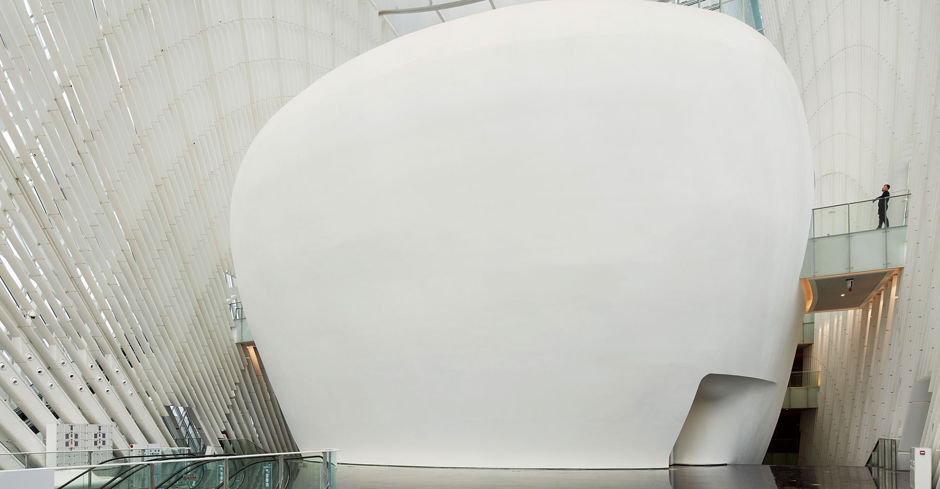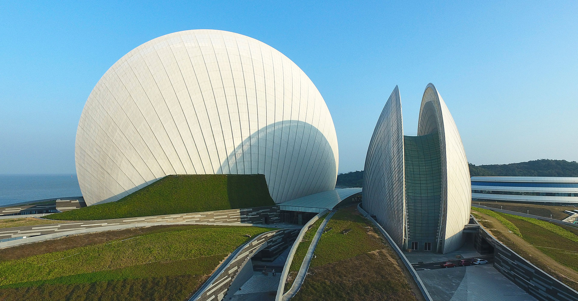 The Zhuhai Grand Theatre is composed of two groups of "shells", one large and one small, forming the overall image of the opera house, hence it is called the "Sun Moon Shell".