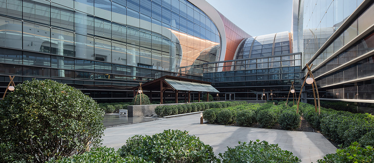 The five courtyards are located at the end of the five corridors of the terminal building, forming an inner courtyard environment surrounded by glass curtain walls, with relatively harsh microclimate conditions. Choose varieties with strong tolerance and easy maintenance in plant selection. The Tianyuan Porcelain Garden China Garden is located on the second and third floors of the terminal building, with a roof covering landscape. The design strictly reviews the structural load and covering conditions, and the Chinese Garden is built with rockery. The landscape and structural professions have deep communication and cooperation to ensure the integrity and implementation of the design.
