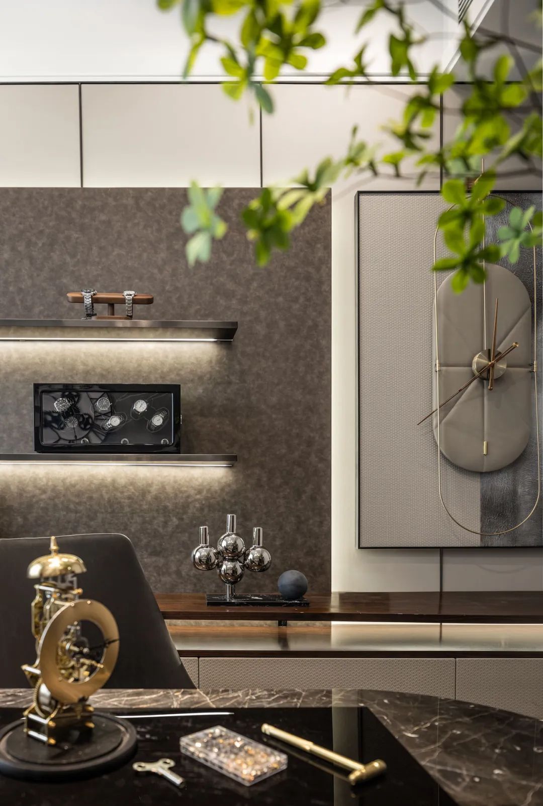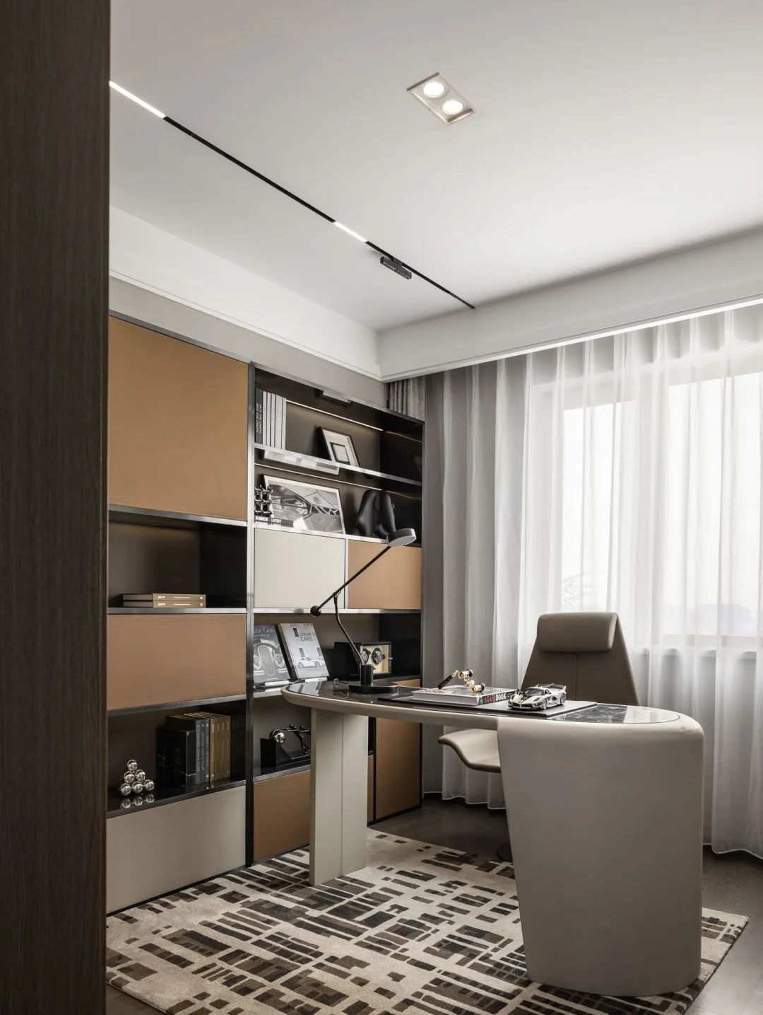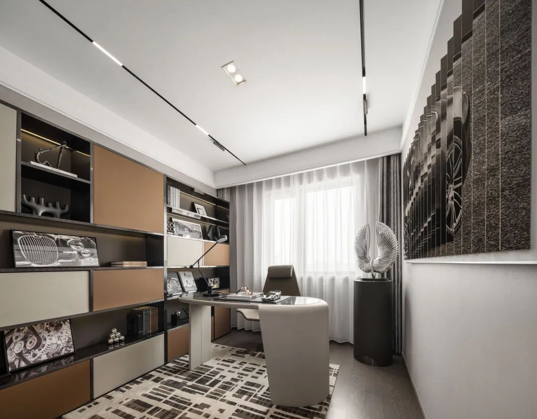 The study places equal emphasis on elegance and luxury, while fine decoration and quality coexist. Cleverly using cars and clock props, the theme of the study is reflected, and every time you step into the study, it will evoke a strong emotional resonance.