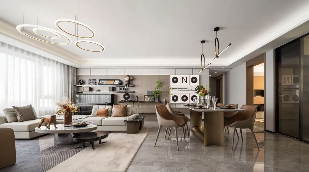 客餐厅双动线设计,让入户体验充满归家的仪式感。奢华皮具与金属锻造以艺术廓形延伸美感,诠释国际现代奢华的优雅与贵气。