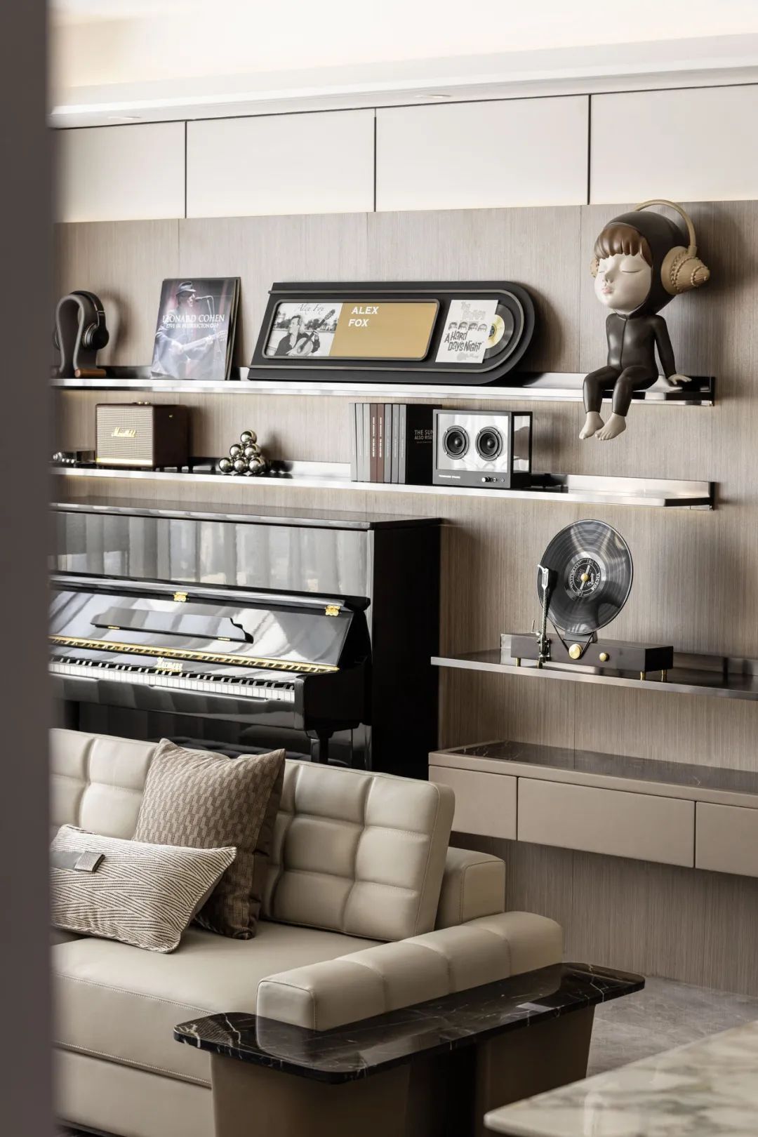 The design theme of this case is "Enjoy a Feast and Fly Through Life", which connects the memories of time in music into chapters of life. It is embedded in the design scene, combined with the needs of storage, collection, performance, viewing, and other daily life needs, to interpret the music spirit of the home, and build an ideal living place for modern urban life.