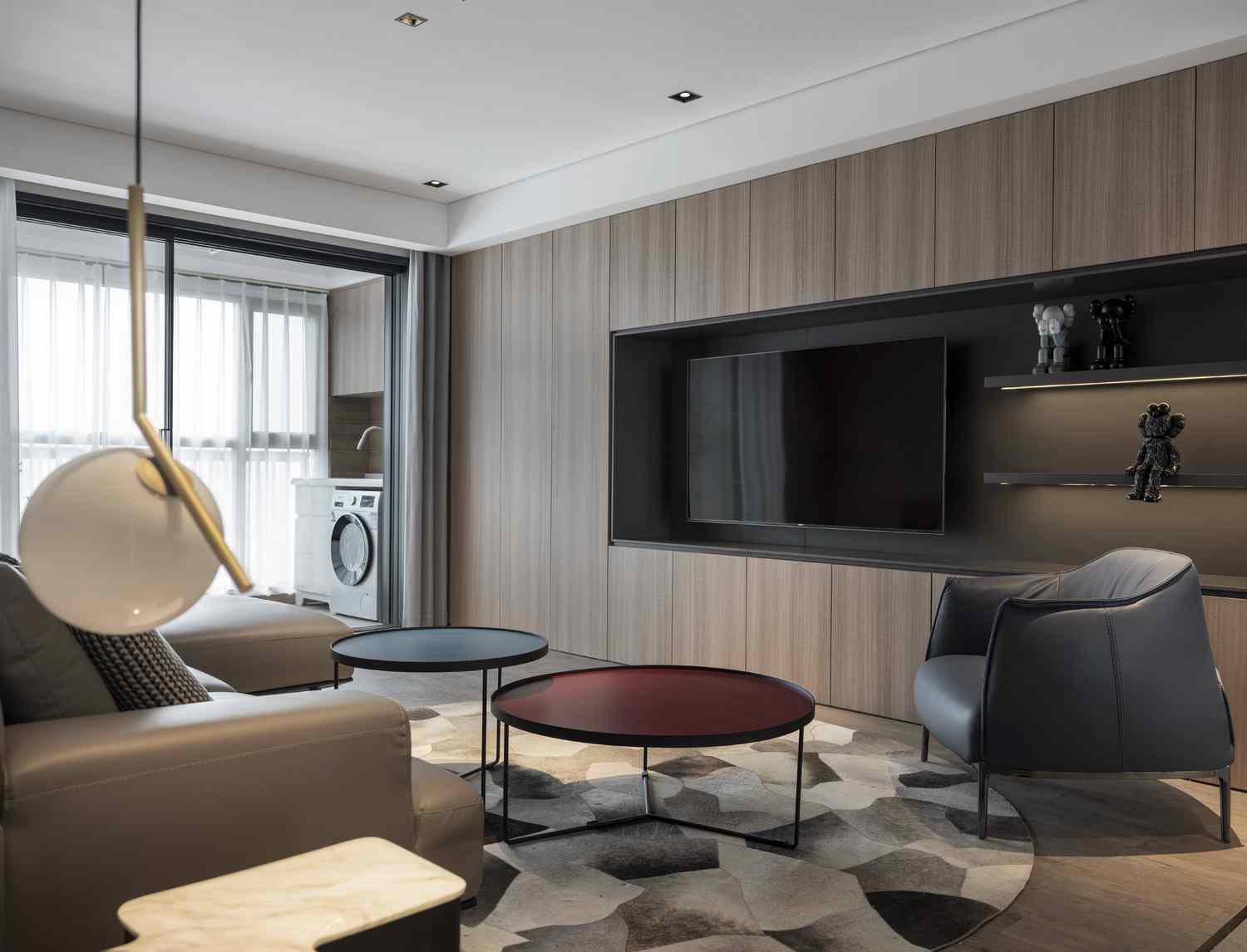 格局上我们将客厅与次卧的墙面开了一个窗洞,它既为客厅带来通透感,又是次卧的层板搁架。