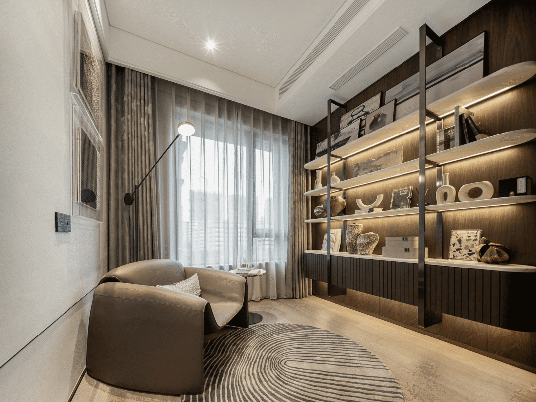 Search for the source of culture in the form of cultural relics. The warm light emitted by the reading lamp is shrouded in the study, creating a comfortable and leisurely spatial atmosphere, and implementing low-key and elegant elements to the end. Listen to your inner voice, feel the gift of time, talk to ancient artifacts that have traveled through thousands of years, and remember the spiritual significance that comes from reading every time.