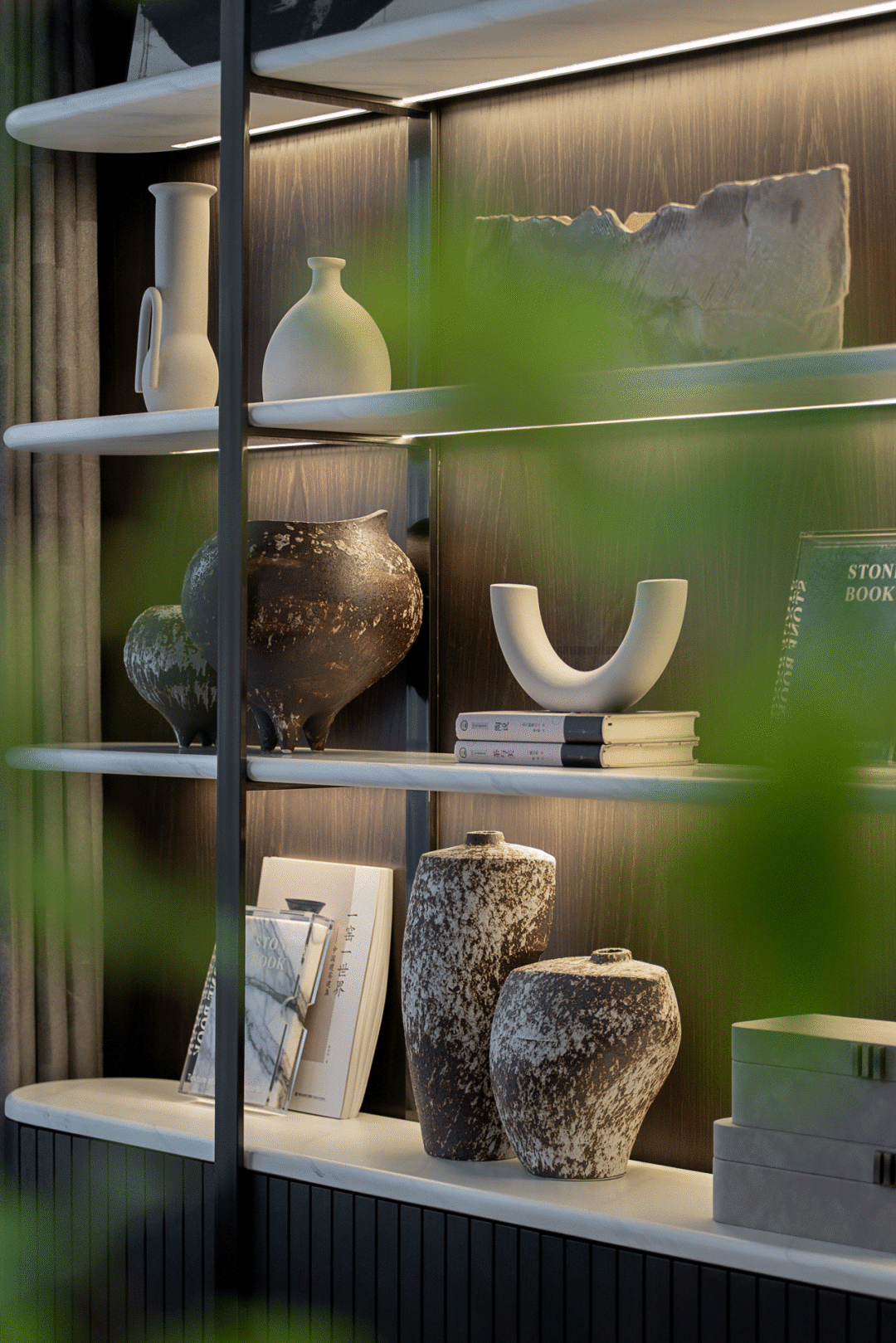 江山如画,非“织”不足以传承匠心巧思。源于自然山水灵感的天然石材如雪满山巅,既有质朴之美又带几分洒脱之感。瓷砖、金属、皮革、夹丝玻璃......不同纹理填充空间,丰富视觉层次感的同时,展示生活与艺术共创空间,兼具家人的情感交流和娱乐功能,赋予客厅多元、包容的情绪,突出整个空间以人为本、端庄稳重的气质。