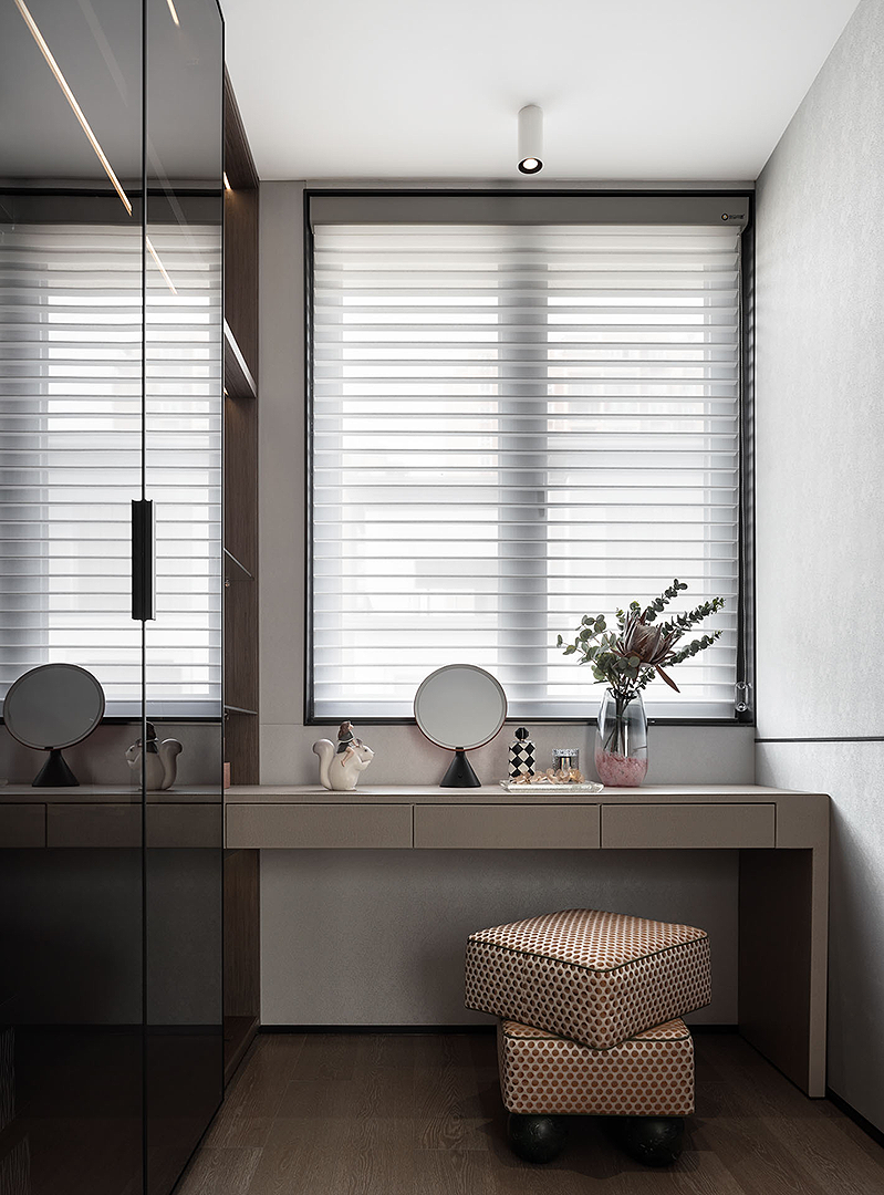 Time is connected in the camera, reflecting the past and future. The design of the senior room conveys a sense of concealment in details, endowing objects such as a wall hanging, a carpet, and a bottle of floral art with an elegant charm, blending the cultural atmosphere and emotional scenes inside the space, and revitalizing the overall style with a transparent luster.