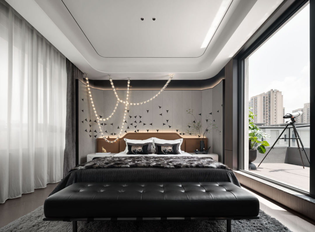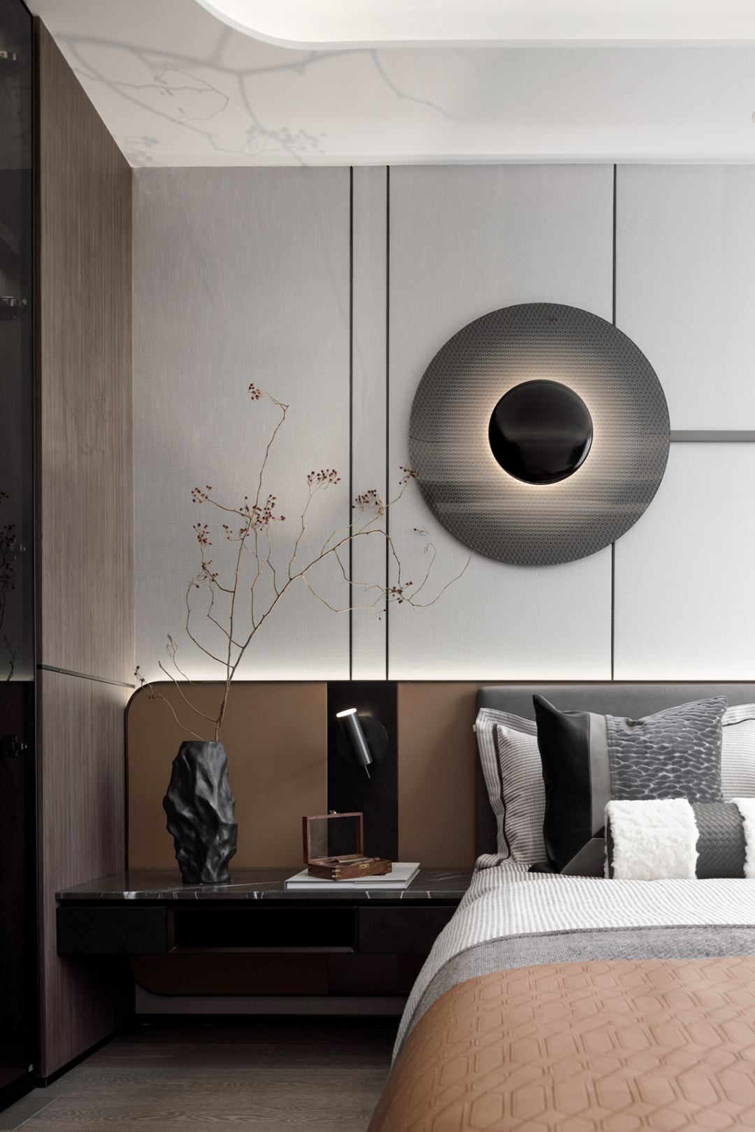 The bedroom is the spiritual territory of the residents, and the coordination of colors in each area also reflects fashion taste, continuing the overall color tone of the living room, and the outline of the spatial outline fully demonstrates the style.