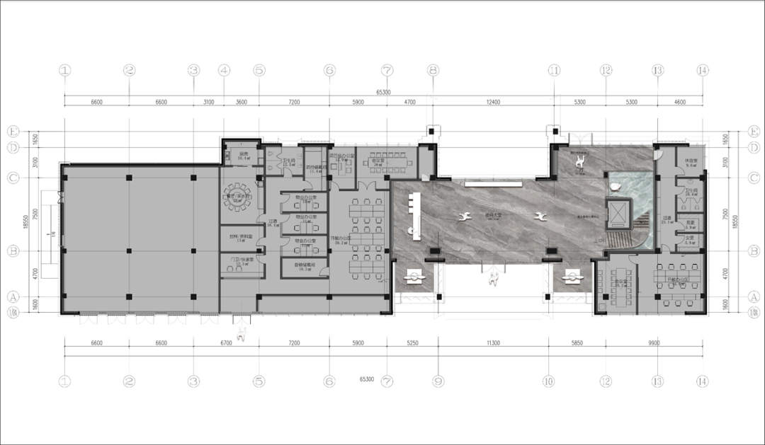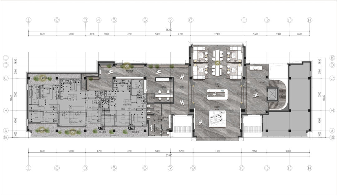 The overall soft furnishings use a calm gray coffee color as the main color tone, making the overall space more gentle, bringing social scenes closer and giving people an invisible sense of belonging. Carpets and functional furniture are combined in a form of fusion and detachment, forming a coherent and unified visual experience.