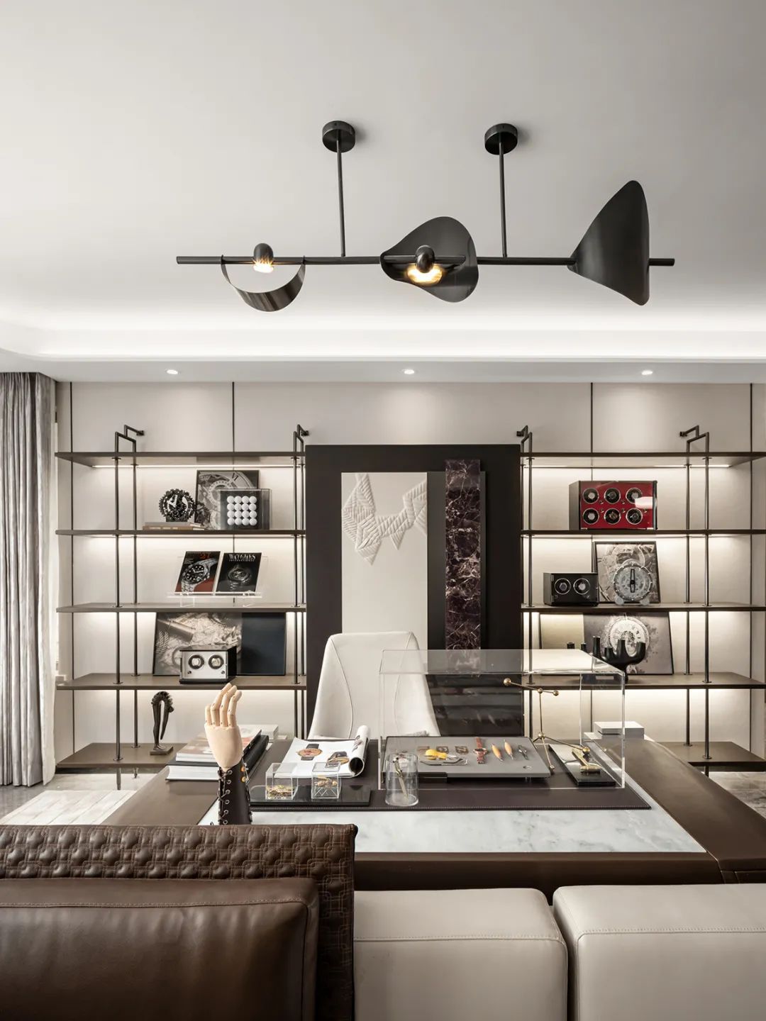 Literature "is the" safe haven "of the soul. The living room and study create a space that combines aesthetics and practicality. The metal and wooden shelves are the soul embellishments that run through the "heaven and earth" here, reflecting a fashionable and luxurious style.