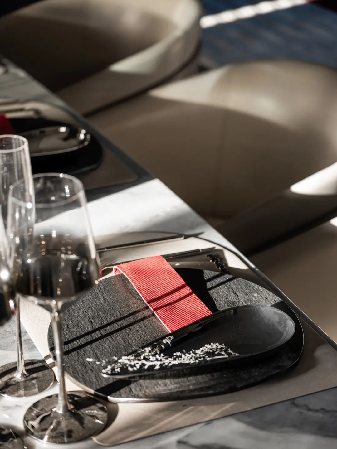 Injecting the exquisite and business luxury of the Bulgari Hotel into the overall design concept, the natural art of Yunshui is embedded in the spatial layout, using stone, wood decorations, crystal and metal materials to enhance the quality of the space, and embellishing retro small details to highlight the soul of Bulgari's design.