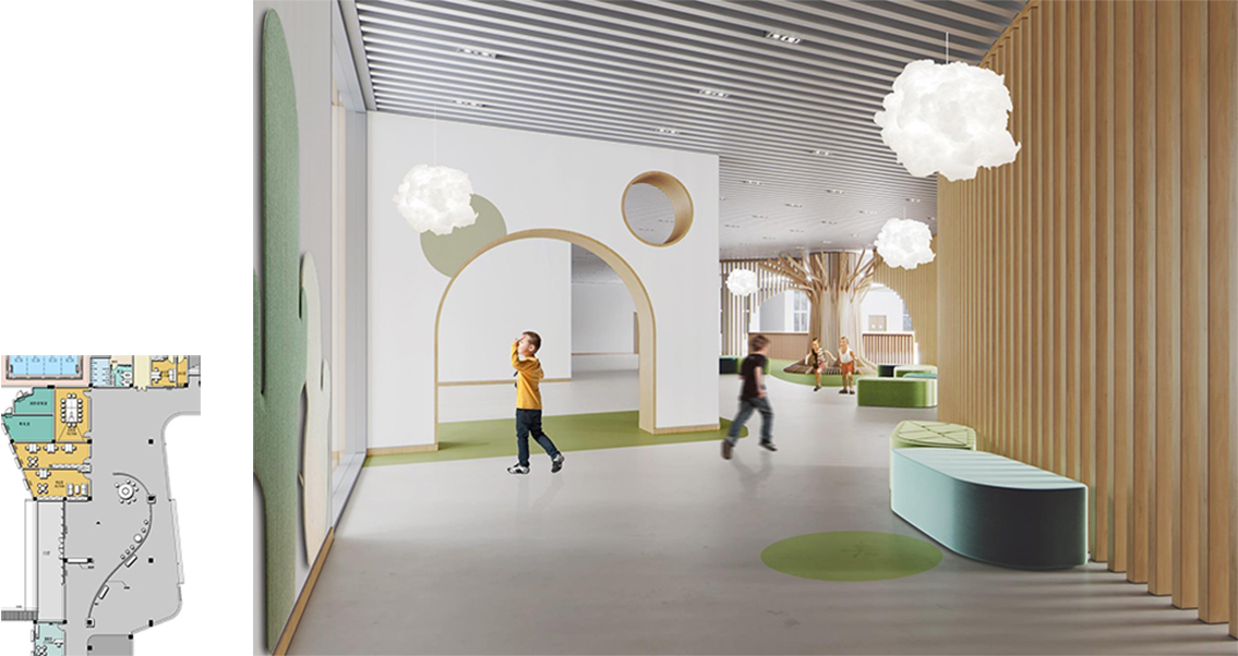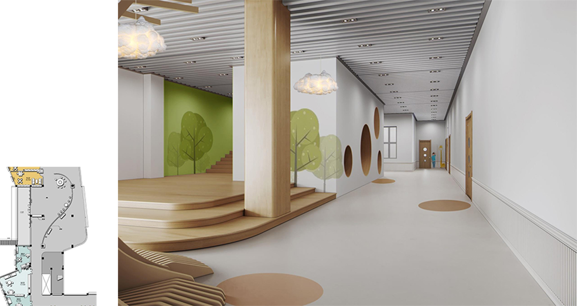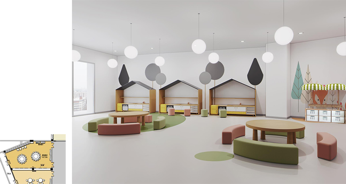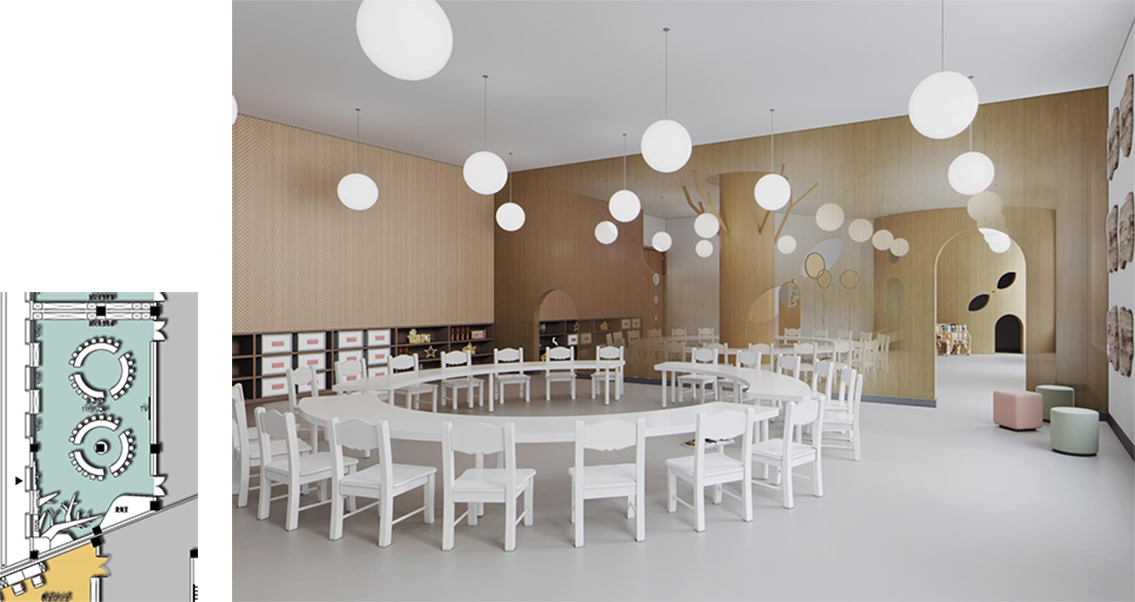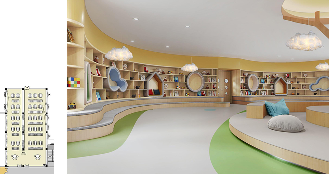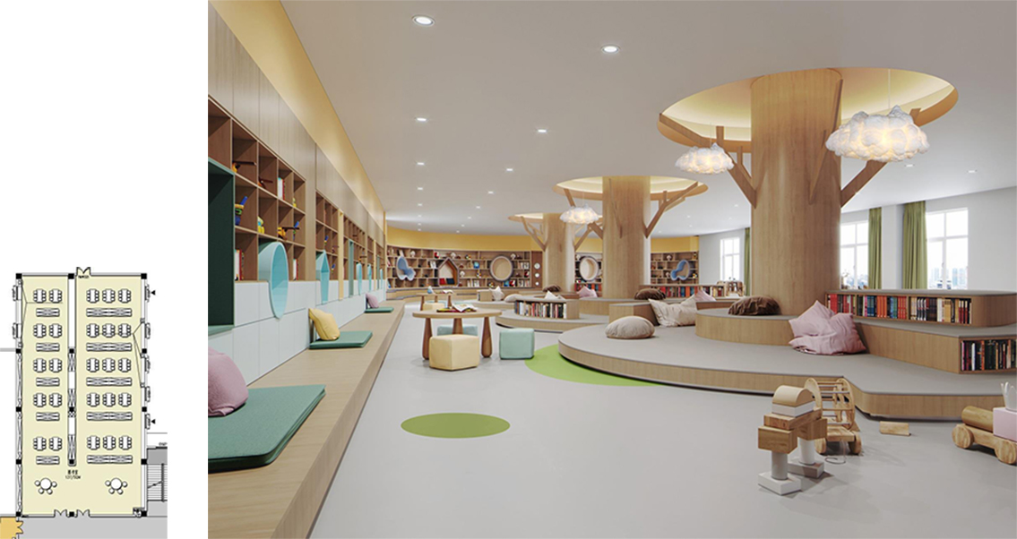1. With children as the center and light and active as the main line, children feel the fun brought by the environment.Teachers' offices are close to the teaching area for instant interaction.