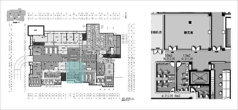 ▼视角平面图-育乐室/卫生间/电梯/等候区B1,View Plan - Recreation Room/toilet/Elevator/waiting area B1