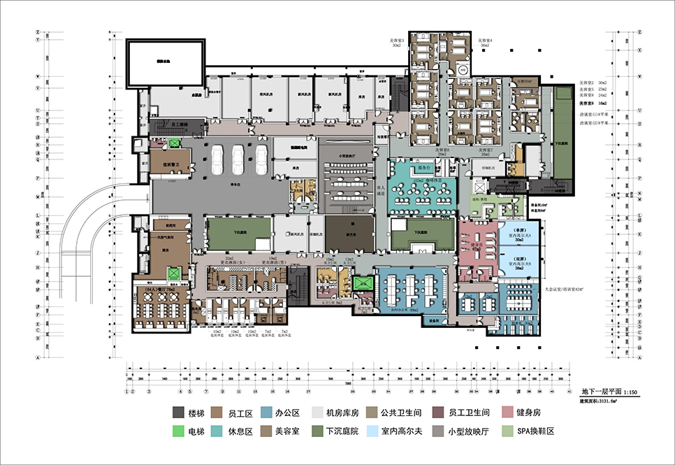 ▼彩色平面图-地下一层,Color plan - Ground floor