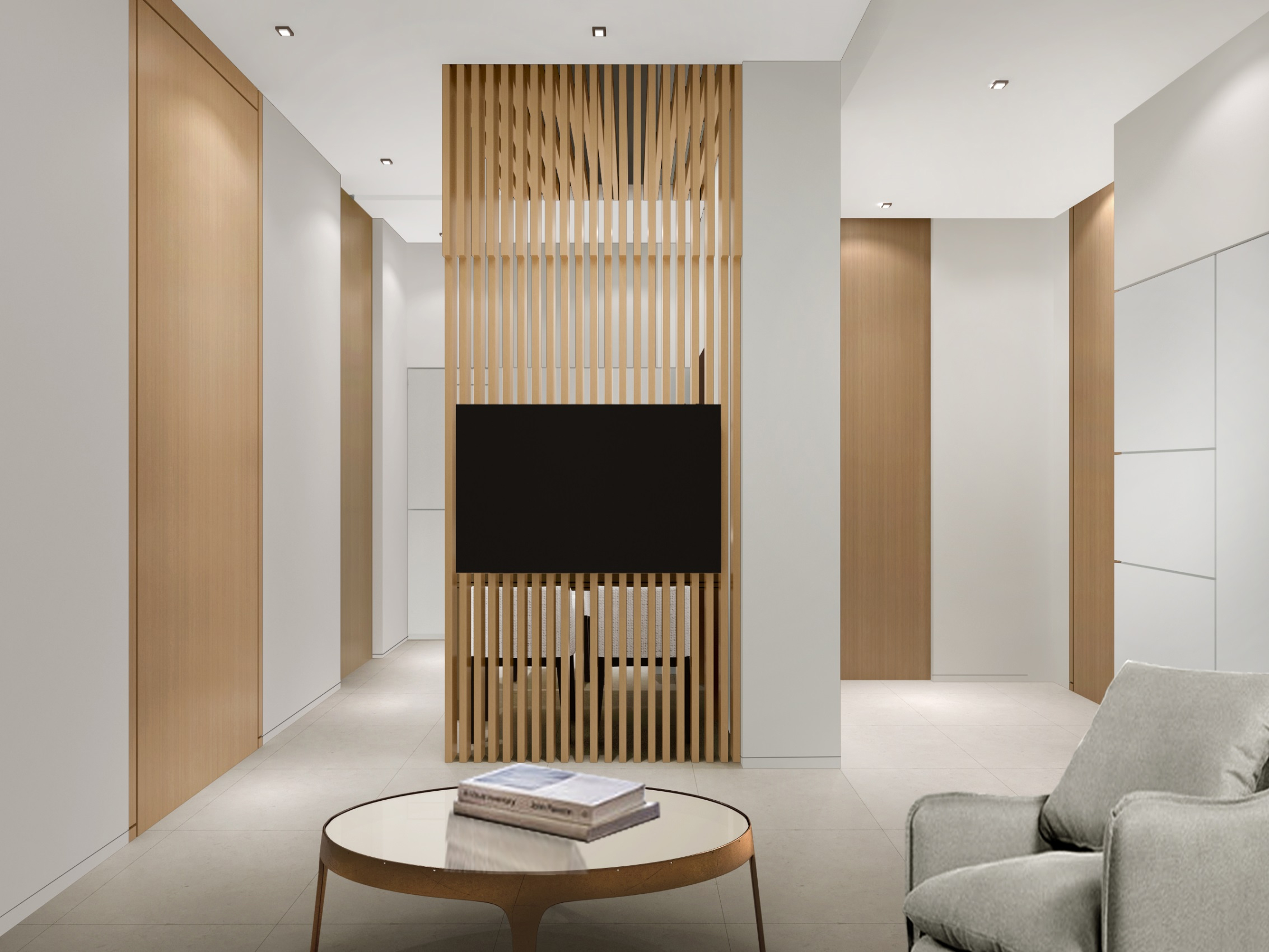 ▼效果图-60㎡新中式风格户型1F,Renderings -60㎡ new Chinese style apartment 1F