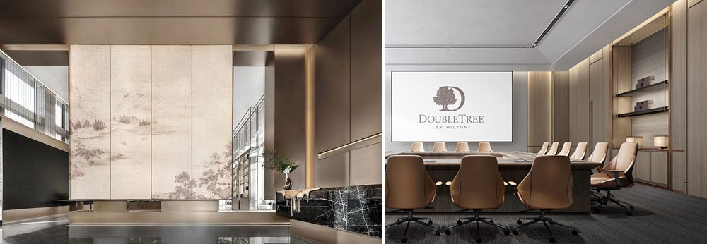 The top surface is simplified through the concept of "distant mountains" in the landscape surrounding the city, applied to the elevator room facade and scenery, with star point light sources as embellishments. The entire space is a combination of reality and virtuality, with the hazy of distant mountains and dazzling fireworks.