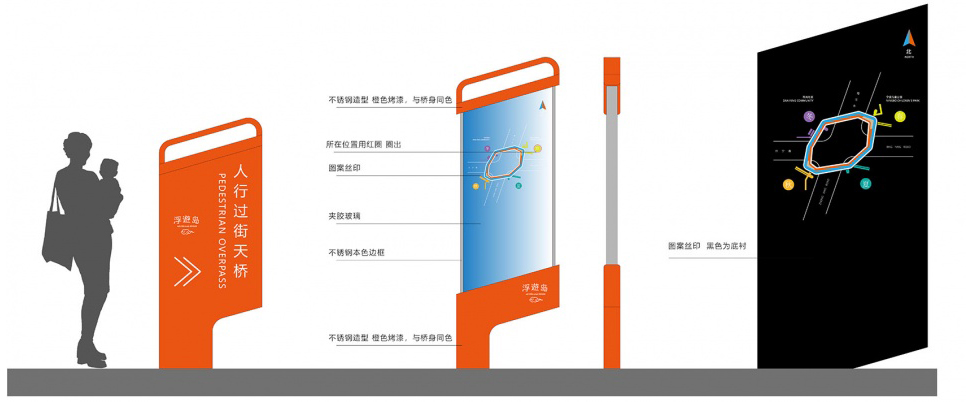 To enhance the design’s sophistication and align with the theme of the children’s park, we have meticulously designed the wayfinding system and urban furniture.