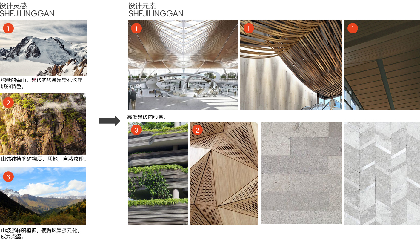 雪山中的悦动—“ 中国的高铁站一个比一个大,像城市中一个个高大的宫殿,人在其中却感到非常渺小,周边通常是大马路、高架桥、和没有人去的大广场。我想,城市中的高车站有没有可能不追求宏大的纪念性,而具有优美的环境,舒适宜人的尺度,和便捷、人性的交通与城市功能?成为让人们不只是奔波,而是愿意停留、放松的城市公共空间?”