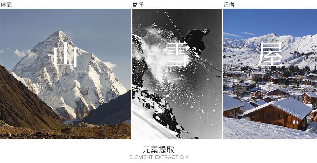 崇礼—作为冬奥会重要场馆地址之一,当地独聚特色的气候和环境,奠定了这座城市不仅仅是旅途的过客,而是旅客的终点。因此在在方案的设计中,我们采用当地独聚特色“雪屋”作为方案的延伸。雪,不仅是景,因为她的到来,所以我们在此停靠。屋,不仅是名词房子,更是欢乐停歇的港湾。