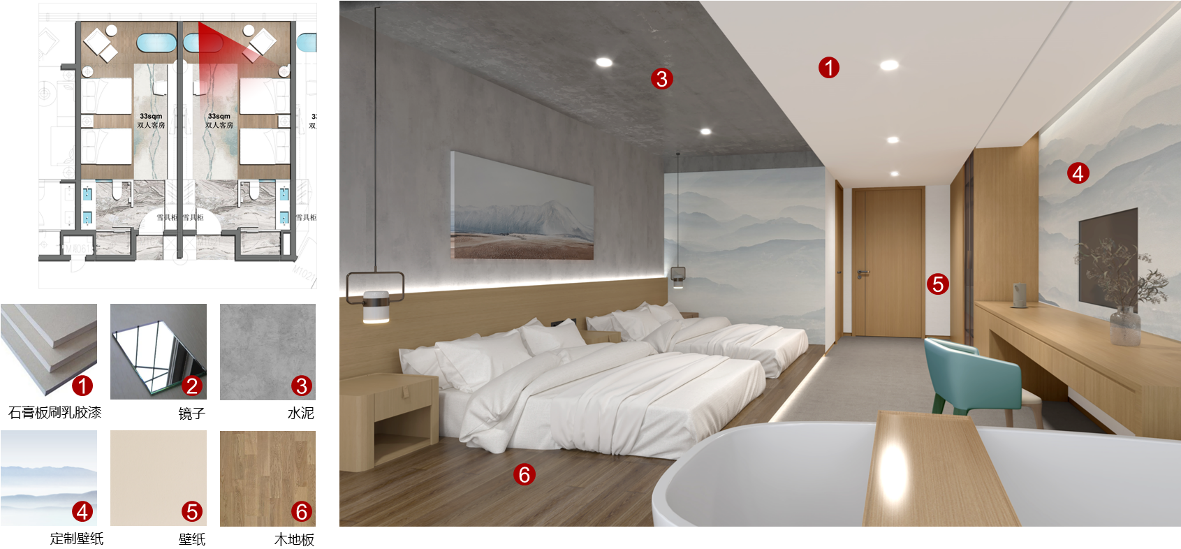 3F客房及厨房餐厅区域—重点空间意向