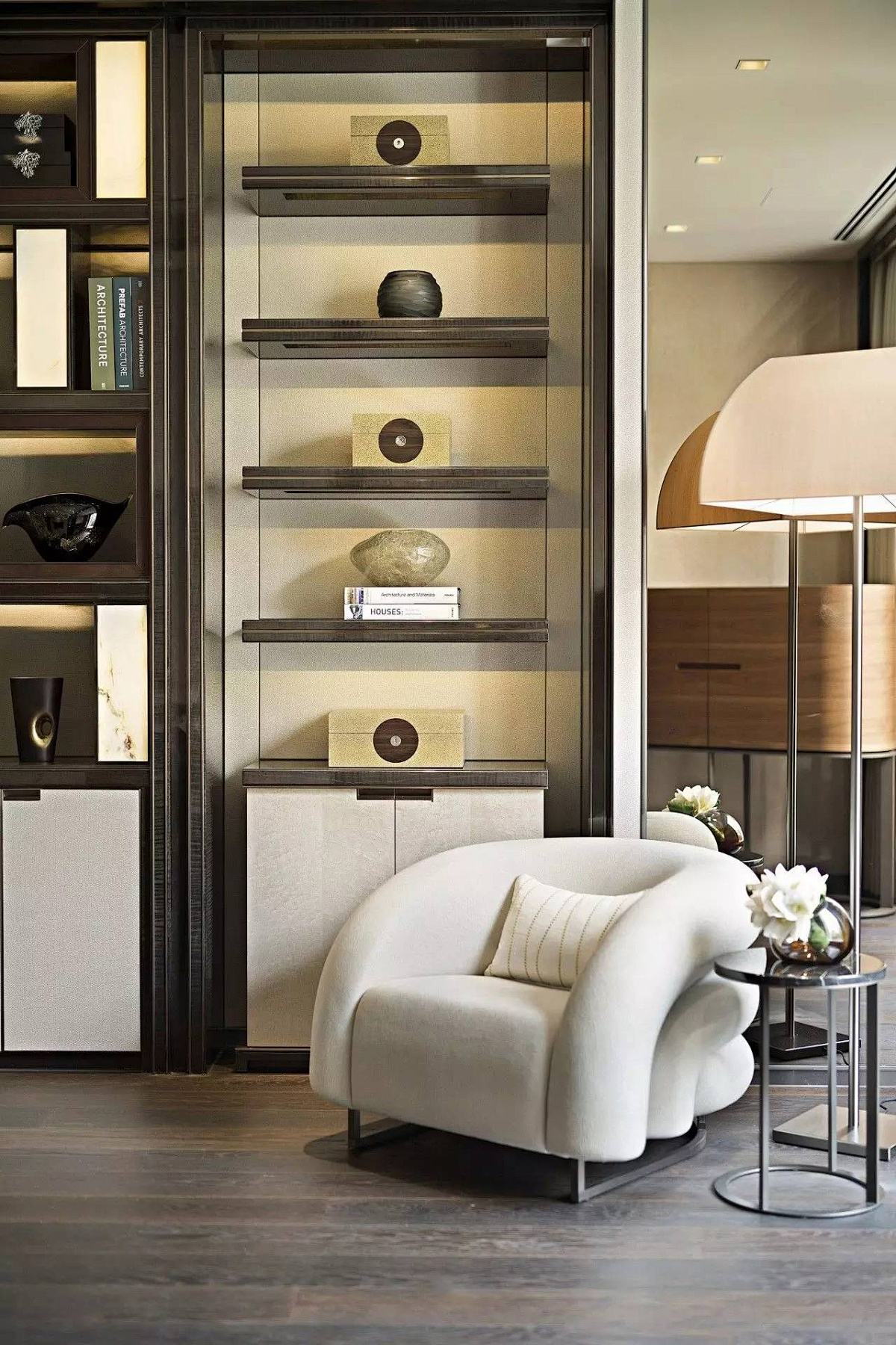 设计师以现代设计手法,糅合时尚与奢华,巧妙地把手工编织皮革的艺术融入设计,为屋主呈现矜贵非凡、品味盎然的生活体验。