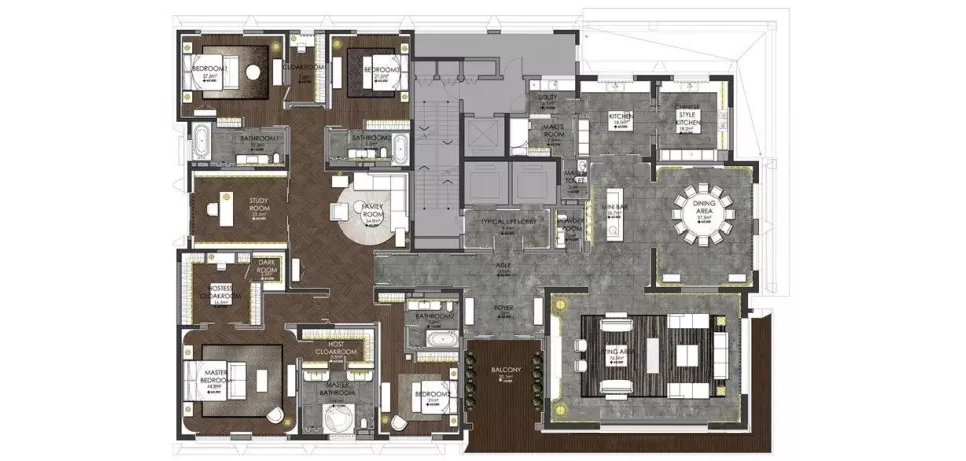The internationally renowned interior design company SLD (full name: Steve Leung Designers Ltd., Liang Zhitian Designers Co., Ltd.) has recently created a super luxurious mansion called Shanghai Gubei No.1, carefully creating a detached and imposing mansion. The project is located in the core of the Gubei International Community in Shanghai, with a superior location and numerous world-class living facilities. It is the only truly mature international high-end residential area in the local area. The project is a four bedroom apartment, with a high-end market positioning. The designer adopts a calm and atmospheric coffee color as the tone, inspired by top Italian fashion brands, and combines modern design techniques to interpret a luxurious and luxurious living experience.