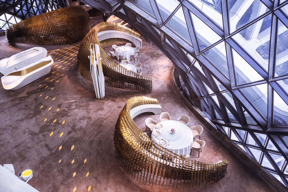 The Morpheus Hotel designed by Zaha Hadid Architects is the new flagship hotel for the City of Dreams development in Macau, China. The $1 Billion development is characterized by a distinctive exoskeleton and uninterrupted internal spaces. UAP worked with Zaha Hadid Architects to explore and assist in the design development and fabrication methods for a series of internal sculptural dining pods. Five unique pods (a total of 9 delivered) were designed to delineate the private dining spaces within the high traffic atrium which overlooks Macau through the perforated exoskeleton.