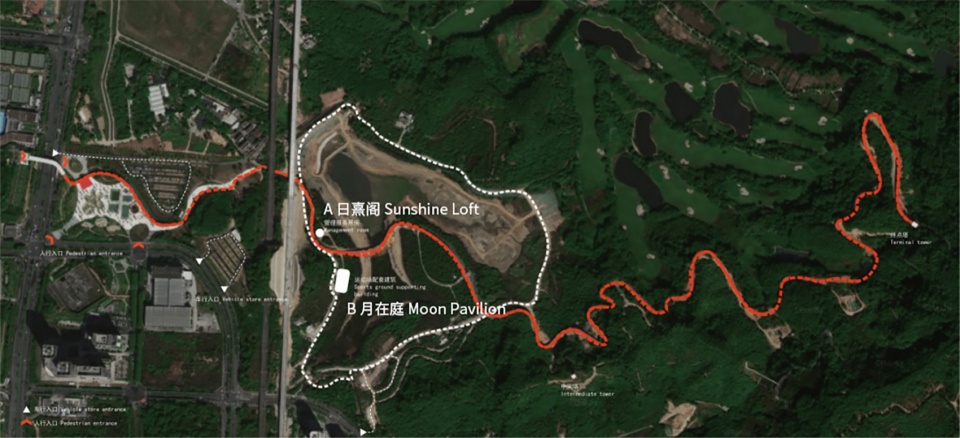 The design of the Sunshine Loft minimizes the disruption of nature and the existing terrain of the site, maximizes the spectacular views from the surrounding corridor bridge and create a pleasant, lightweight building volume. Key design factors include structural selection, functional layout, circulations, and facade design.