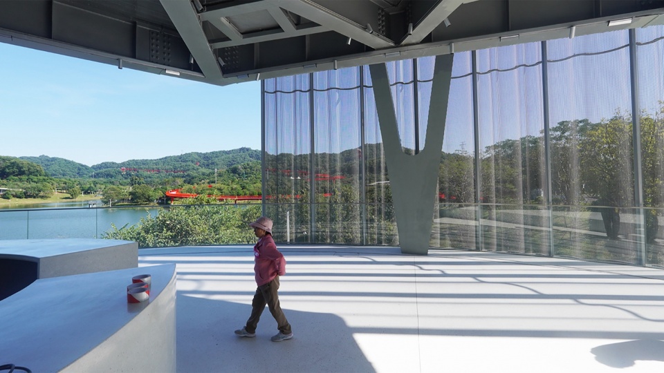 屋顶空间设计为全开放视野,访客可全方位无死角地环视周围景色,尽览公园及远山的自然风光,为整体空间体验增添一份开阔与自由的感受。