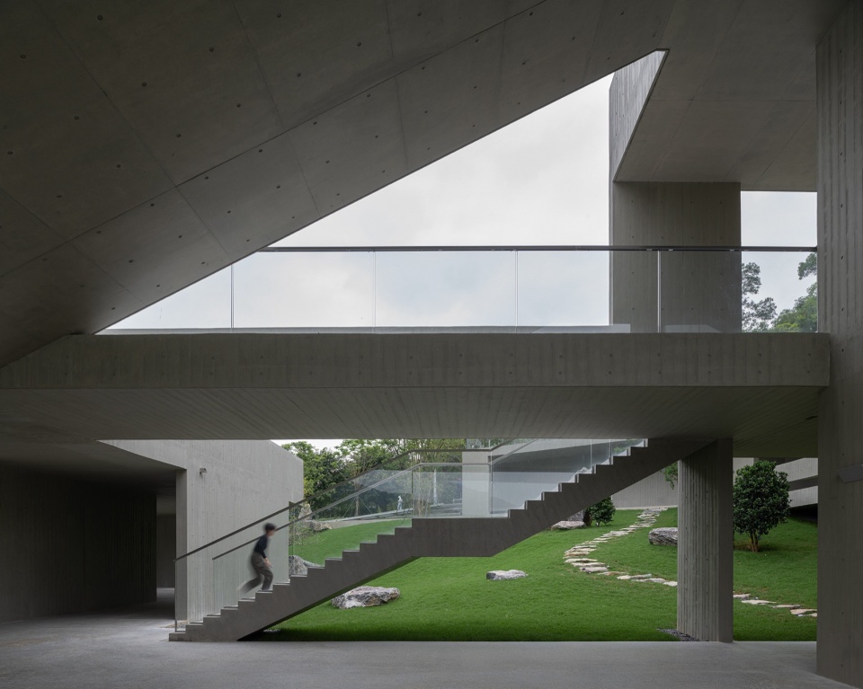 A core principle of this design is to create a sense of purity and continuity through the innovative use of materials and structures. After thorough evaluations of structural options, materials, and suppliers, as well as testing segmented precast concrete splicing schemes, the decision was made to use monolithic fair-faced concrete. This material, with its natural texture, seamlessly integrates with the surrounding Lingnan lychee forest landscape, reflecting the architecture’s pursuit of simplicity and refined beauty. The design achieves a harmonious balance between simplicity and complex visual expression, effectively creating a rich, layered aesthetic within limited space.