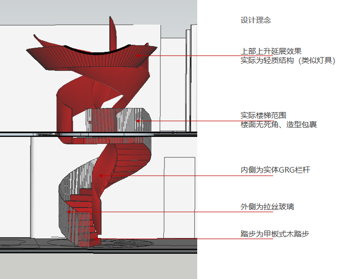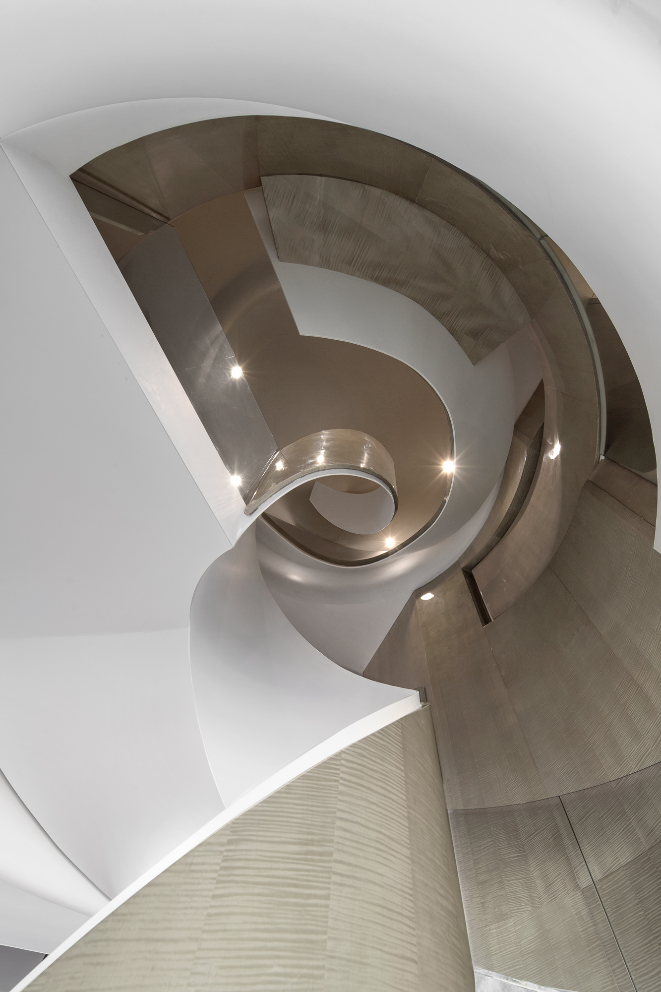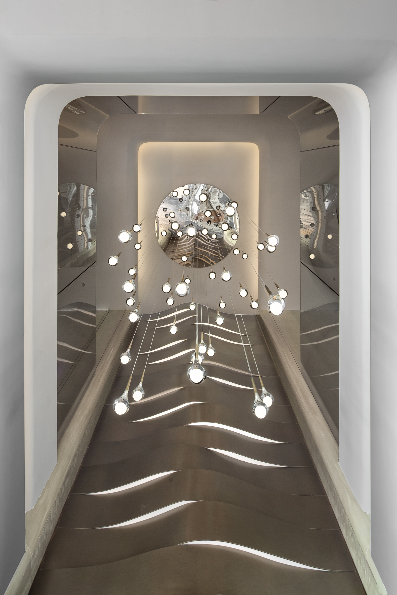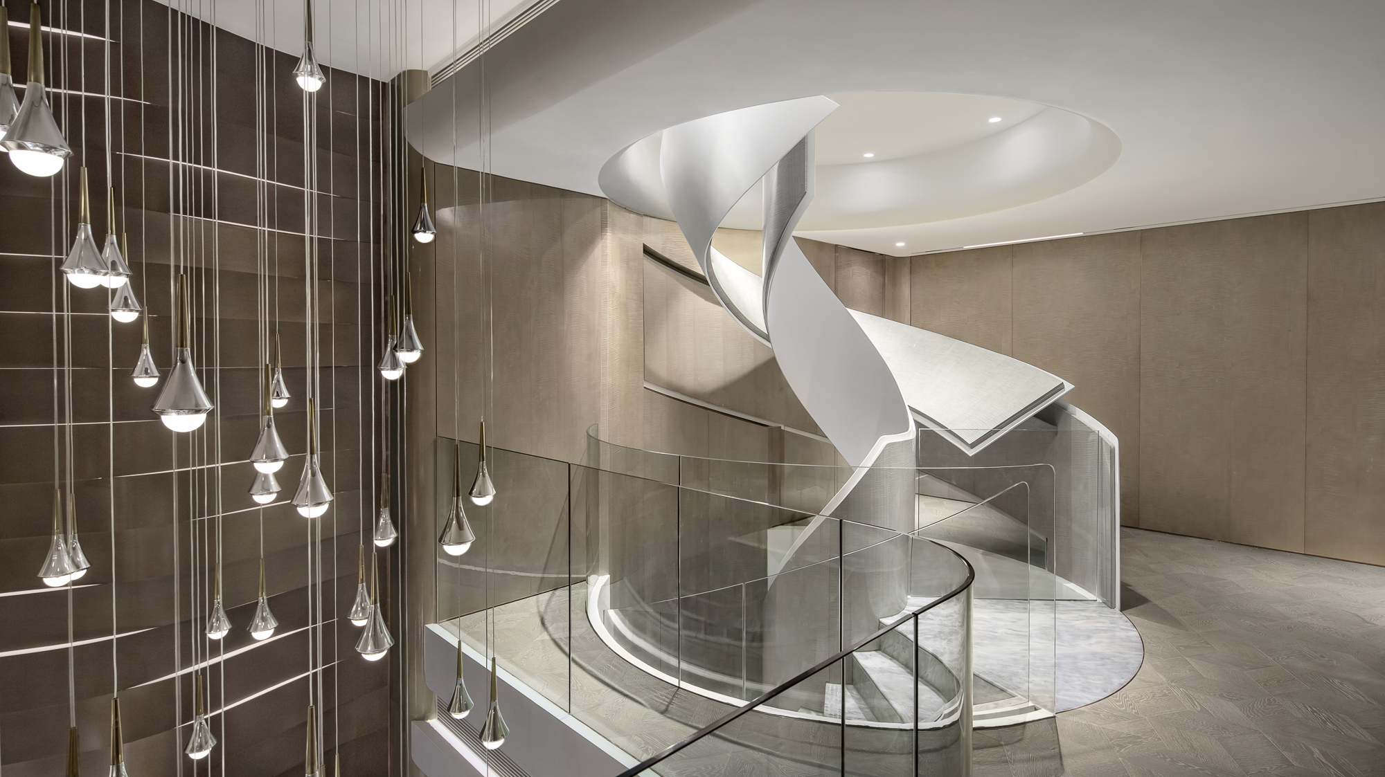 连接两层的的视觉核心-旋转楼梯,拥有华丽的外表和绚烂的灯光,被牢牢抓在地面,却能满足盘旋飞翔的愿望,它不仅是寄托童梦的旋转木马,还是让人目眩神晕的旋转楼梯,沁润出浪漫与悠扬的气息,是古典主义和现代艺术的平衡之美。