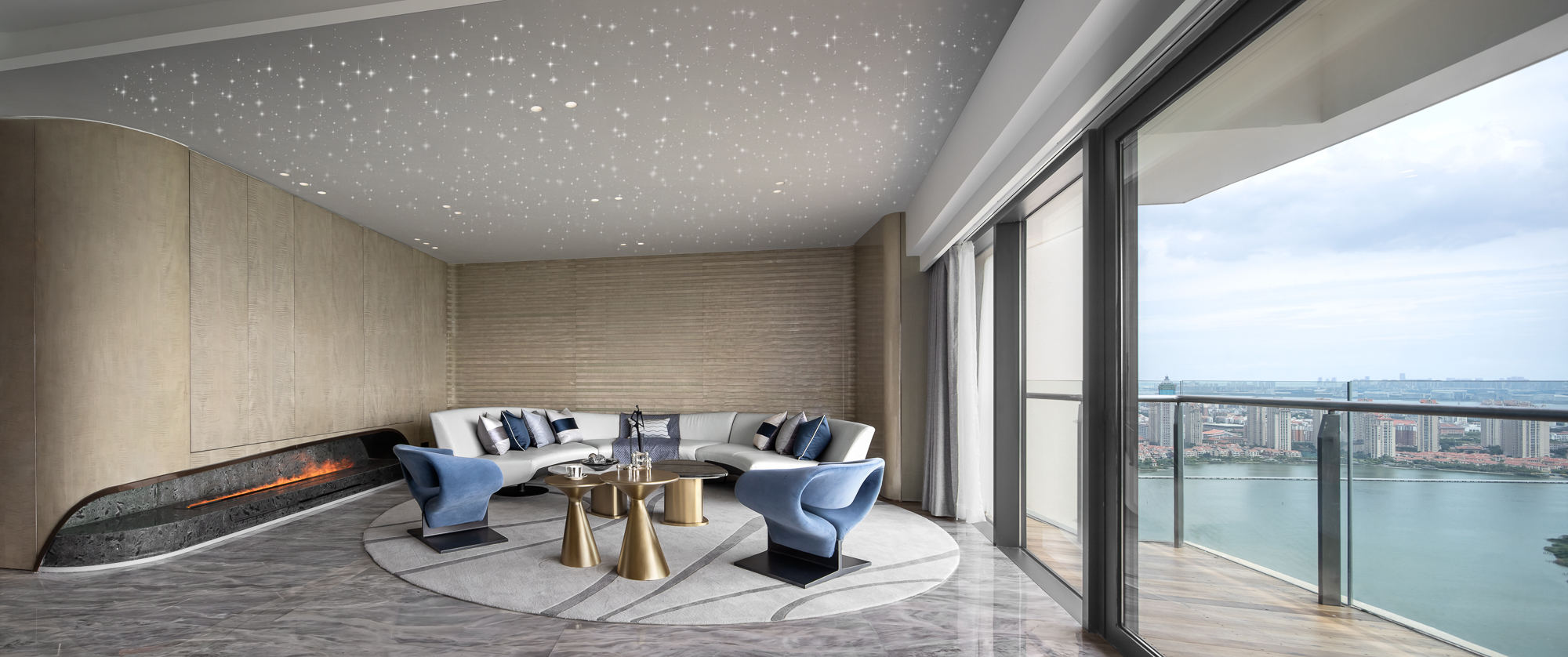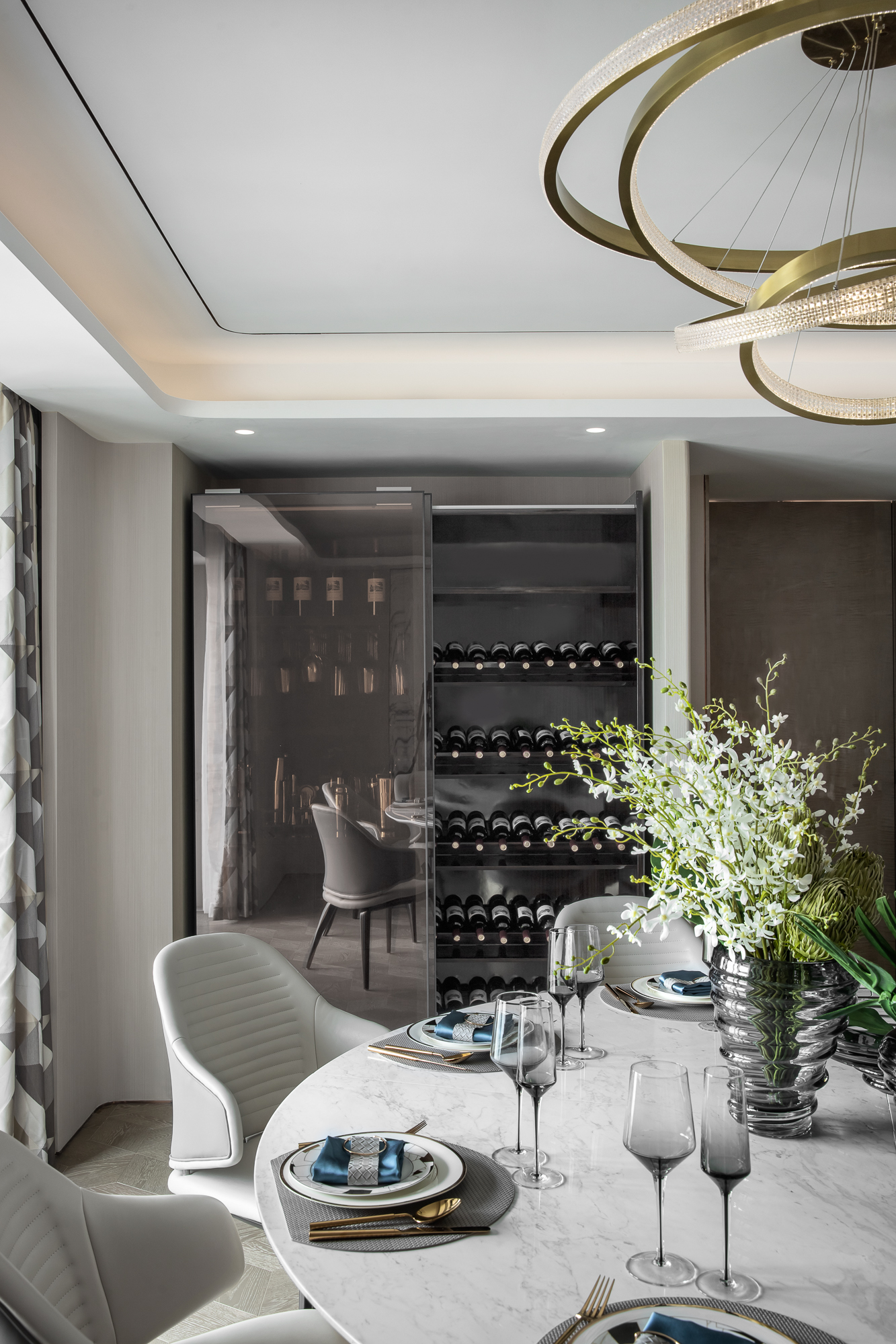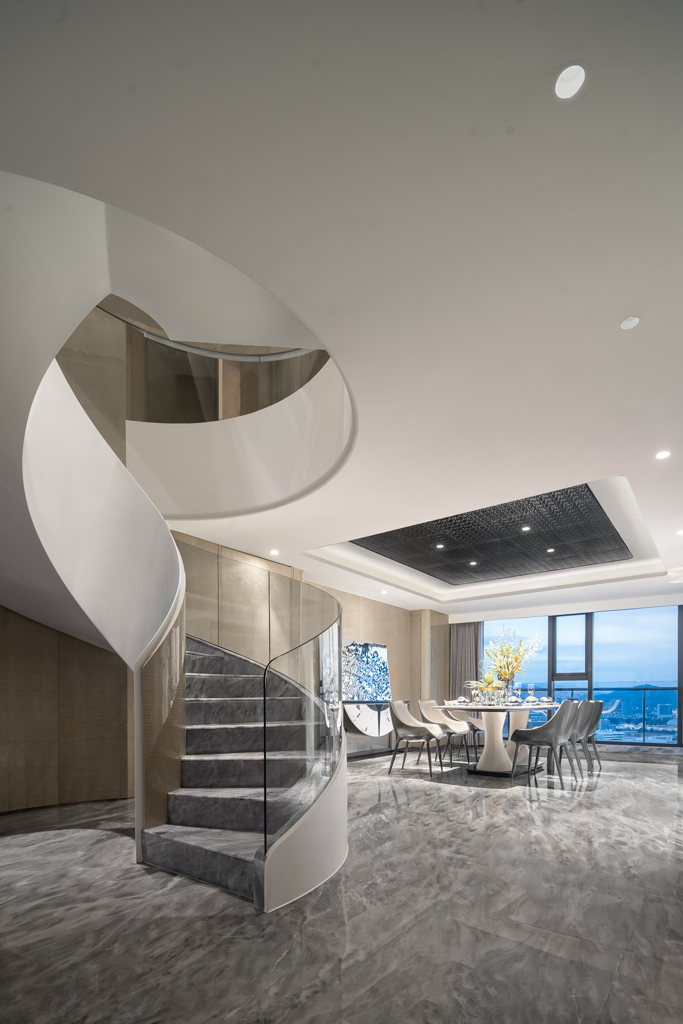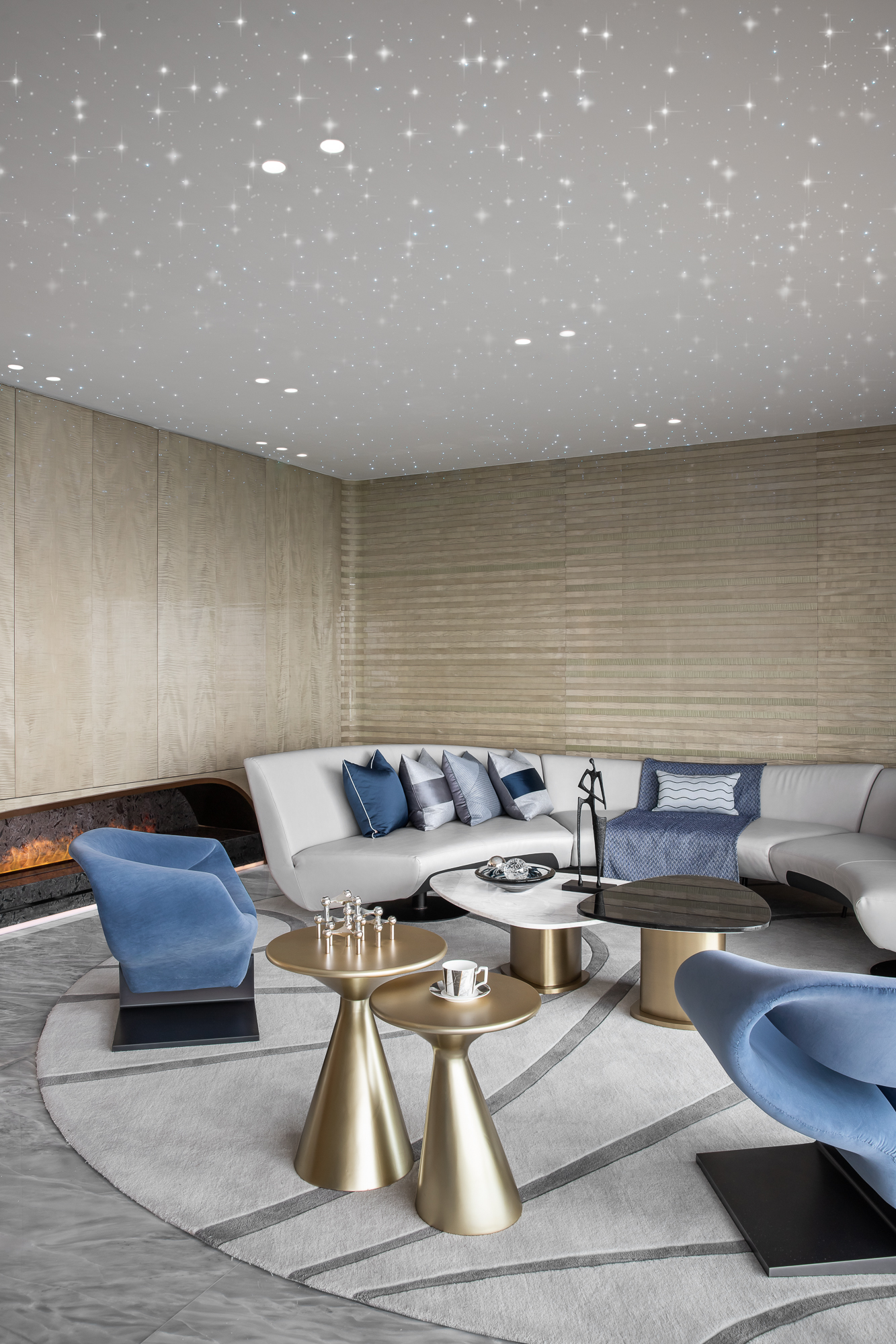 The concept of yacht + private aircraft is introduced into the interior design concept to fully express the brand-new life concept of the modern skyline luxury house. The low luxury and elegant residence is the main tone, meeting the functions of a family of seven, giving consideration to social attributes, and highlighting the owner's taste. The wide screen view of the film shows the open sense of the sea, which has been transformed into a double-sided wide sea view skyline reception hall and the intersection of skyline master bedroom reception and living space, so as to enjoy the skyline luxury in daily life and social intercourse.