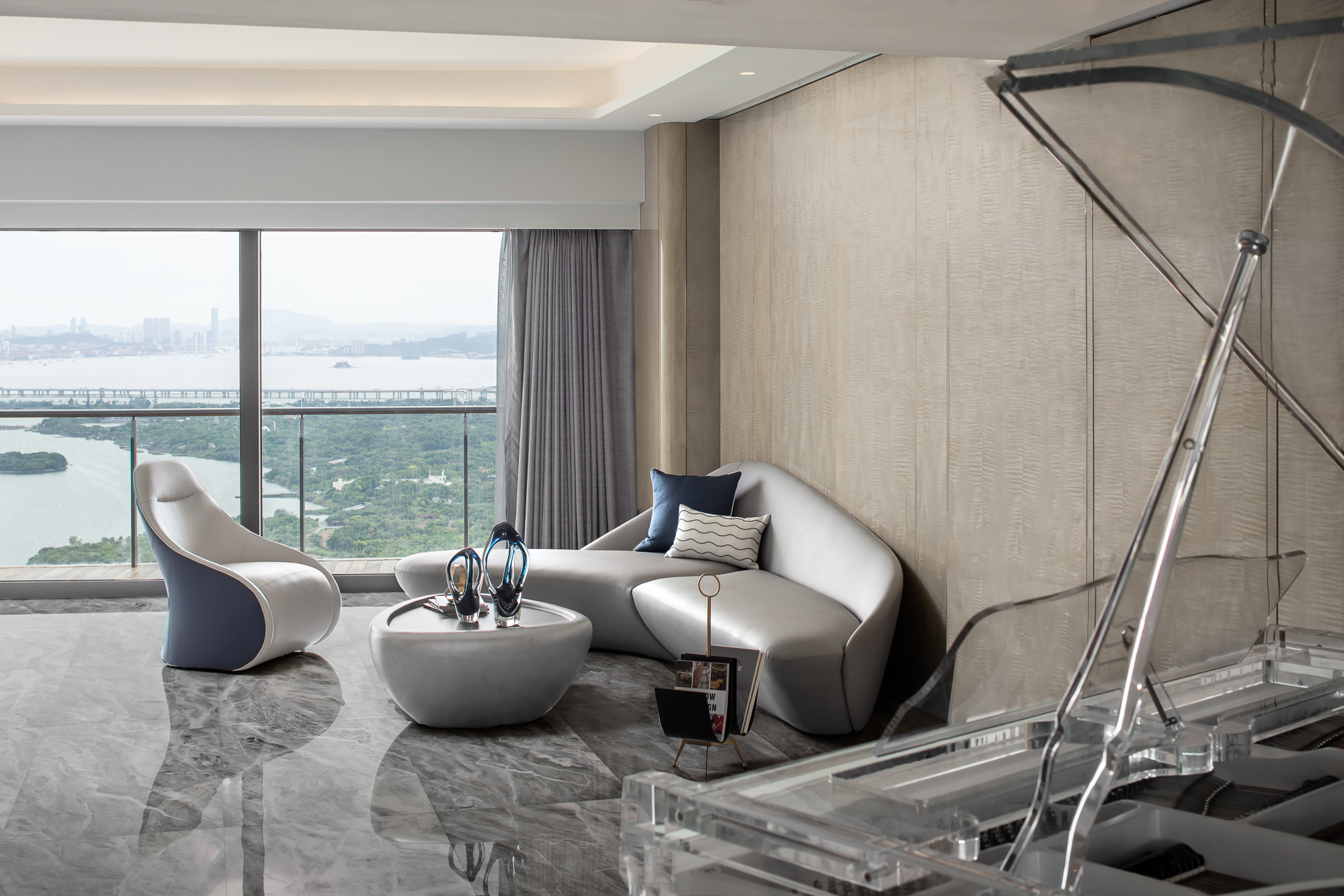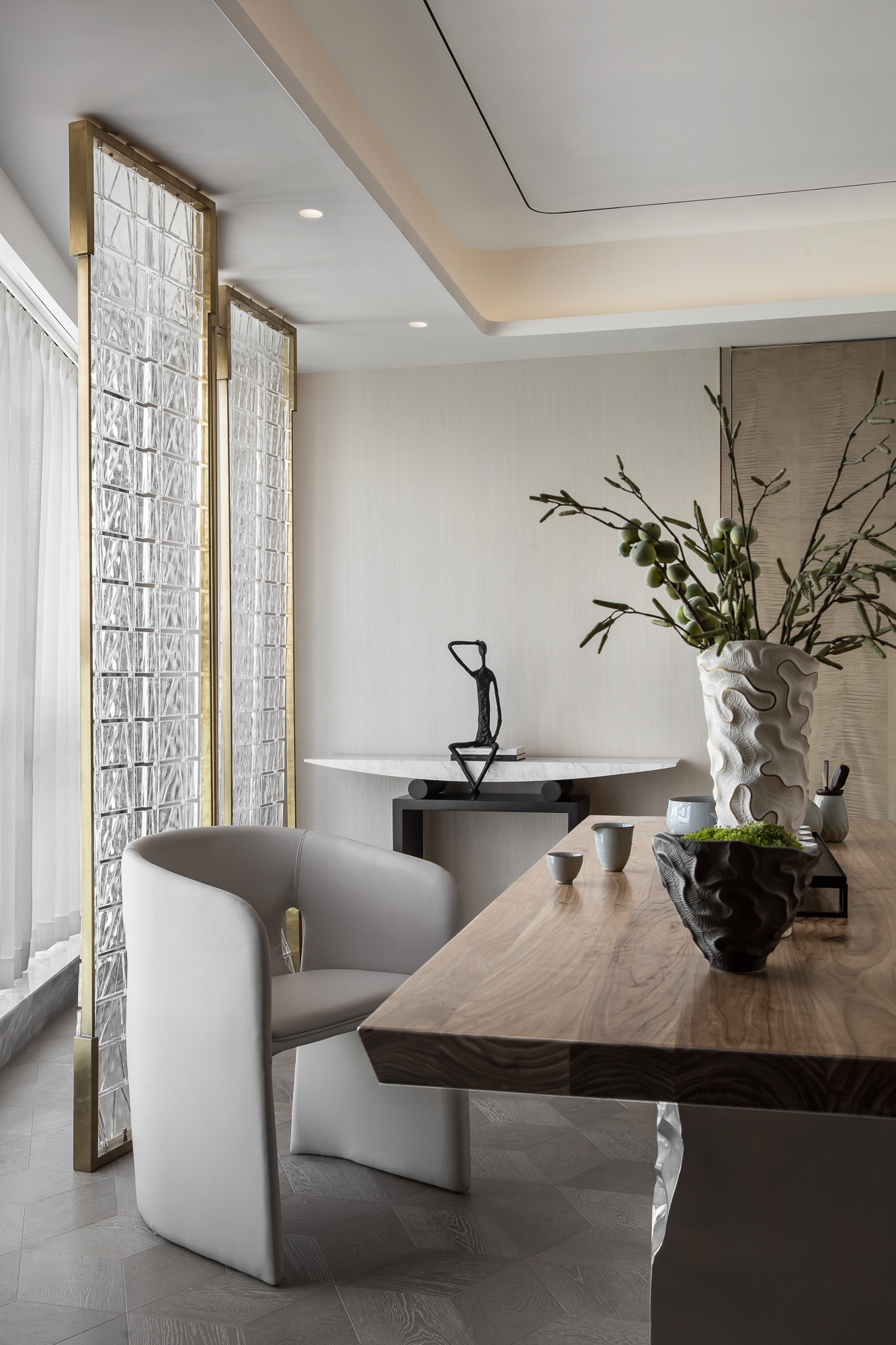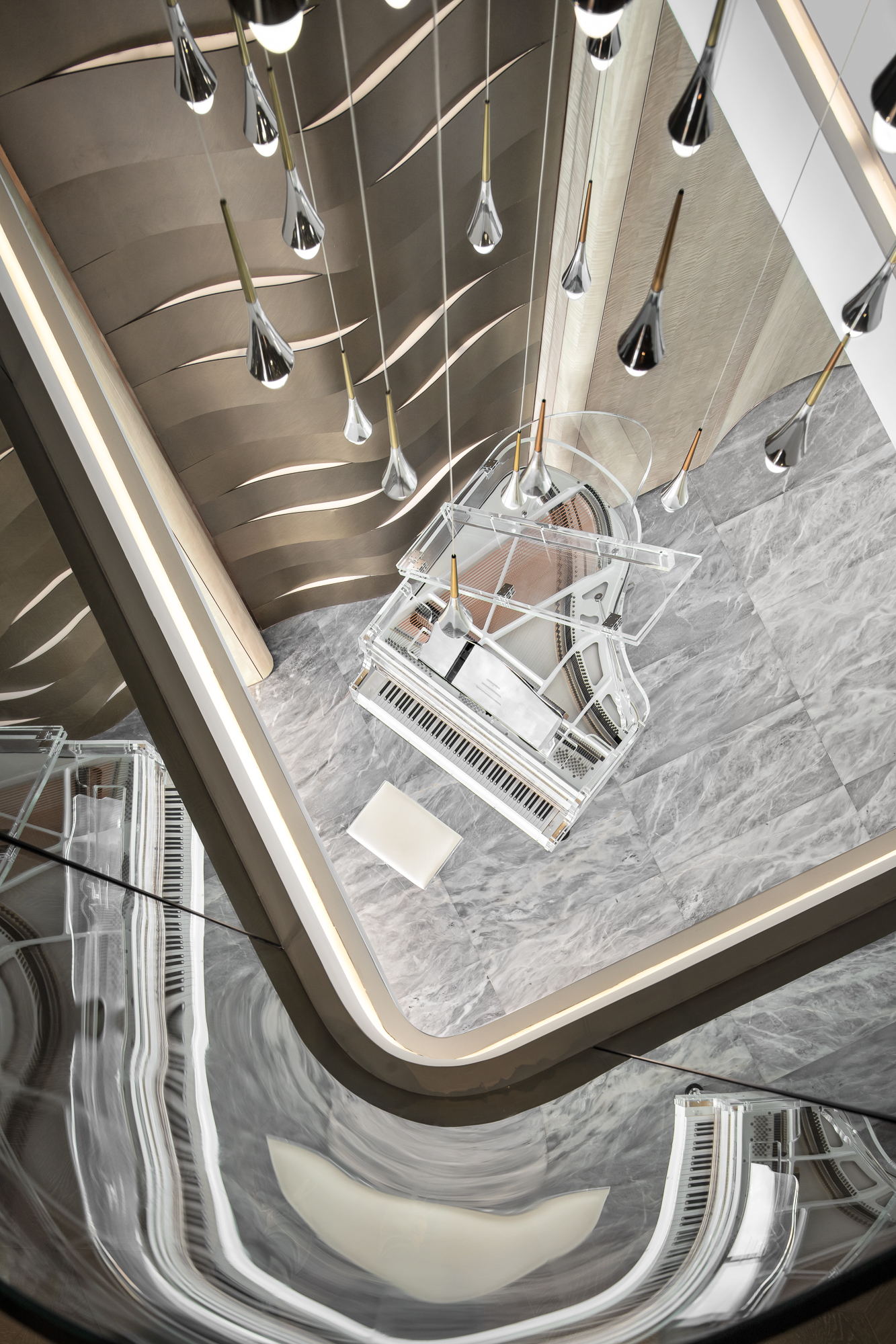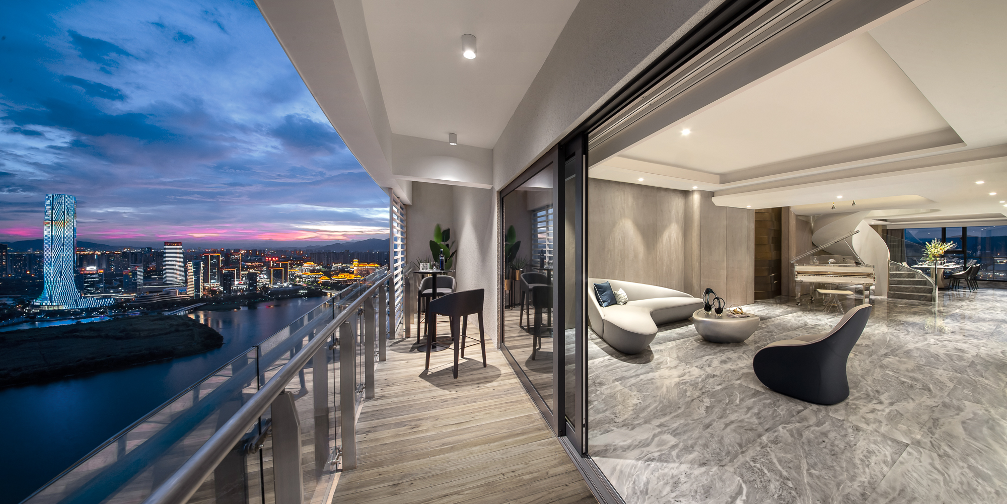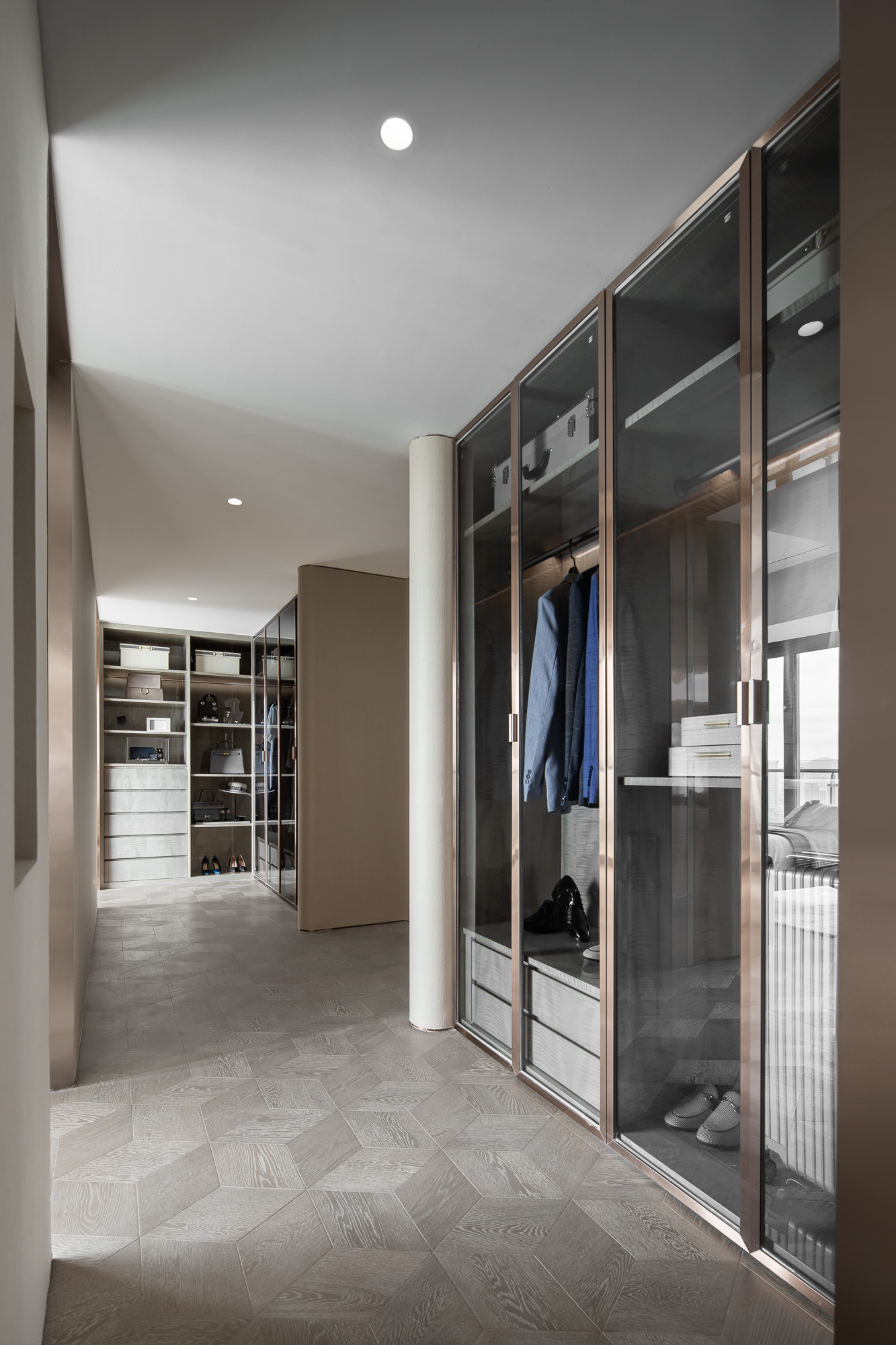 The concept of yacht + private aircraft is introduced into the interior design concept to fully express the brand-new life concept of the modern skyline luxury house. The low luxury and elegant residence is the main tone, meeting the functions of a family of seven, giving consideration to social attributes, and highlighting the owner's taste. The wide screen view of the film shows the open sense of the sea, which has been transformed into a double-sided wide sea view skyline reception hall and the intersection of skyline master bedroom reception and living space, so as to enjoy the skyline luxury in daily life and social intercourse.
