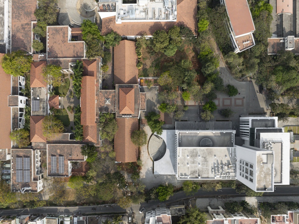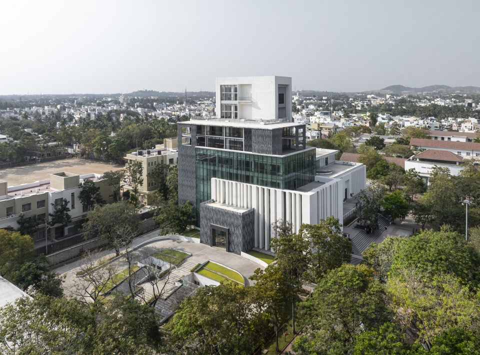 The core design principles of all the buildings on the Sona College of Technology campus are the same – driven by functionality and primary principles of sustainability that ensure better lighting, ventilation, movement and indoor-outdoor connections. However, each building still carries a distinct identity and characteristics which have evolved along with the evolving needs of the institute. While they all belong together, they remain true to the times they were built. The Sona The Sona College’s Admin and Library block complement the Main Administration building, the Heritage Block, blending modern architectural elements to integrate seamlessly with the campus. The campus and each building, including the recent additions, balance their aesthetic appeal with functional efficiency, embodying the institution’s modern educational ethos and community integration.