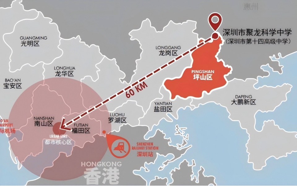 深圳市聚龙科学中学(规划名“深圳市第十四高级中学”)占地面积6.7万平方米,建筑面积11万平方米,是一所能容纳60个班级、3000个学位的全寄宿制公办高中,学校已于2022年9月投入使用。