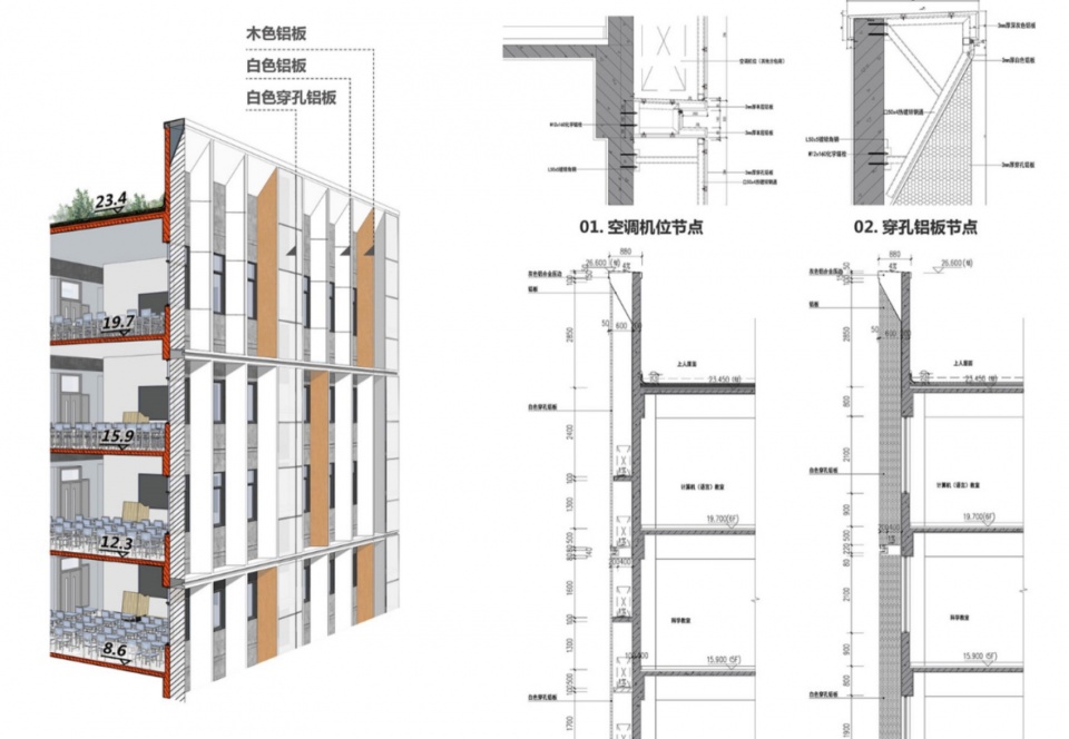 ▼教学楼立面铝单板,aluminun plate on teaching building facade