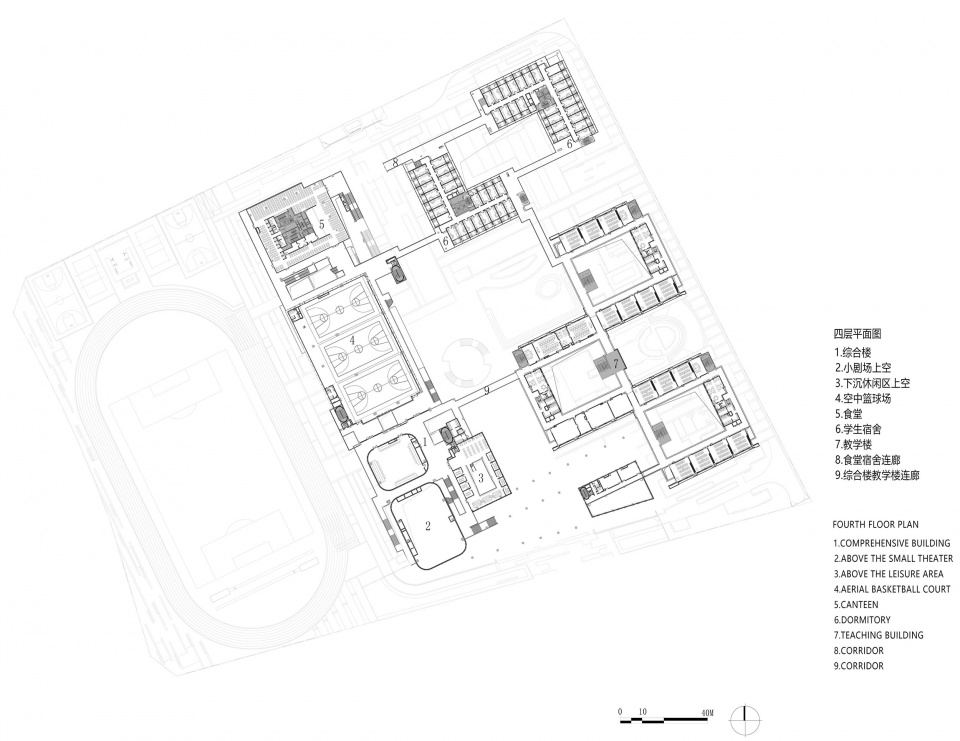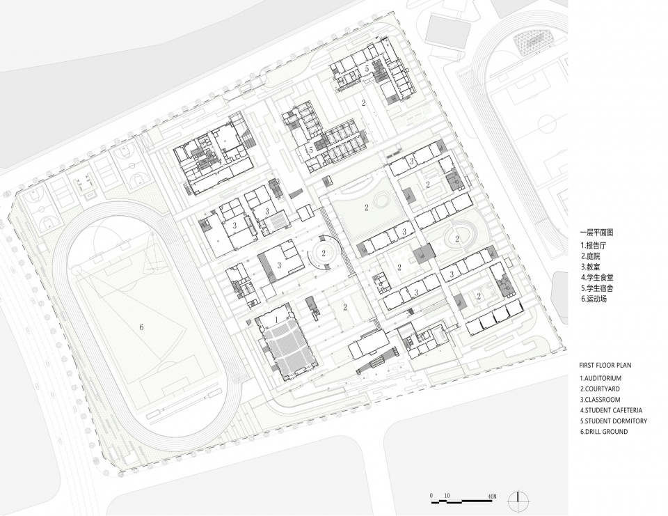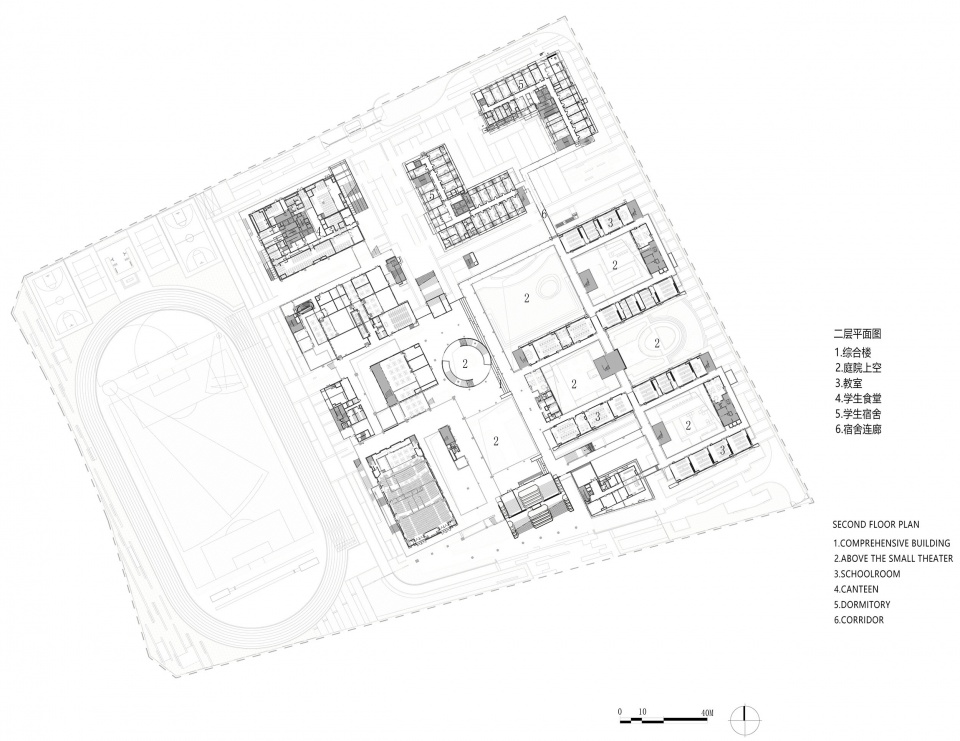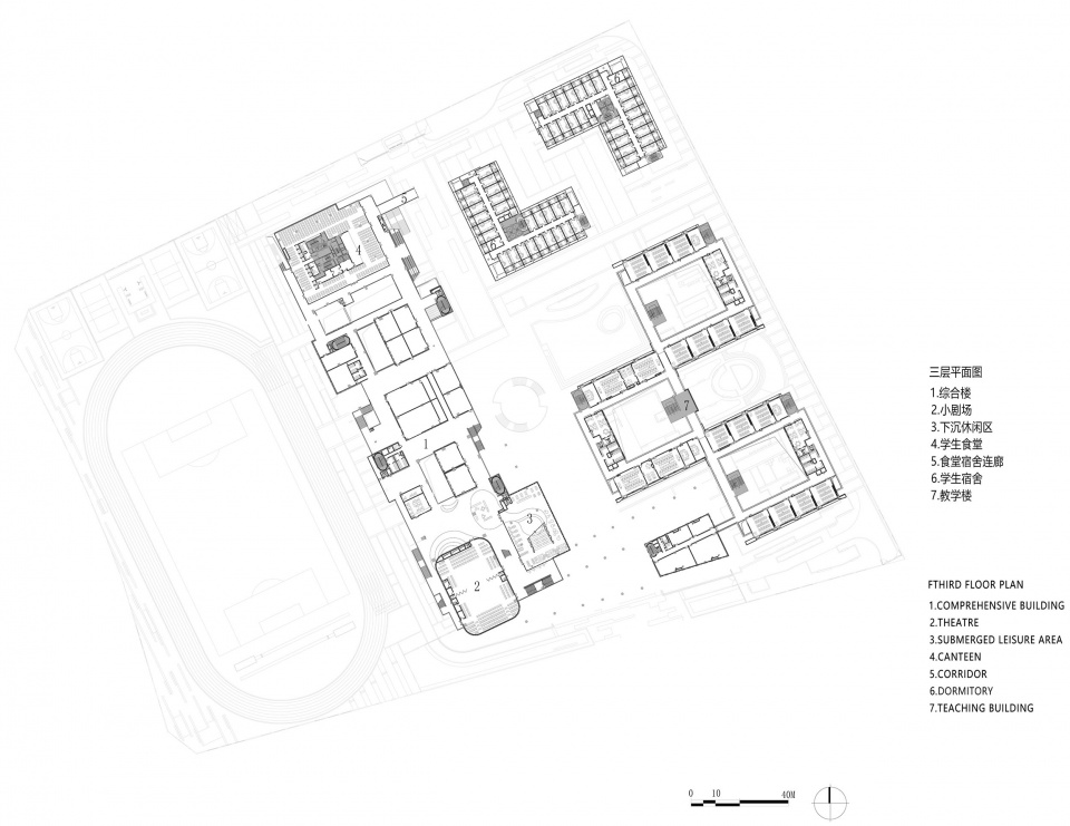 there is a certain degree of spatial penetralion between the social interfaceand the campus interface to provide students with social simulationexperience; and there should also be a cerlain degree of fime penetrafionbetween the inside and the outside, so the penetrated interface could bothaccept social renewal and operate independently with the school to nurturethe society;