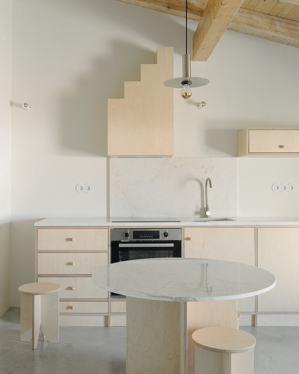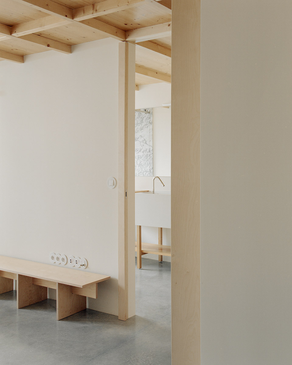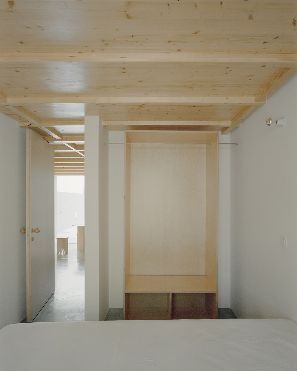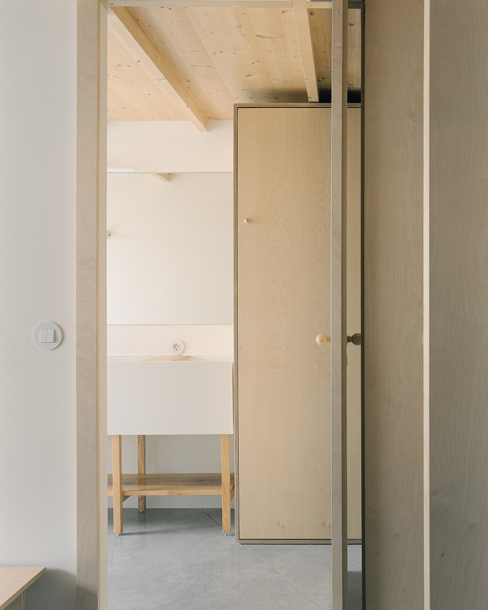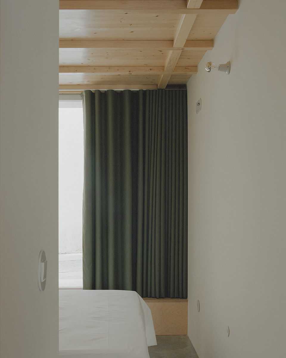 The presence of wood, a prominent element in the project, refers to the traditional layout of old portuguese buildings. However, its use has been designed to create a slight visual dissonance, standing out from the usual tradition, but not breaking with the harmony of the street. This material, both in the structure and in the interior details, gives the space an intimate and cosy feel.