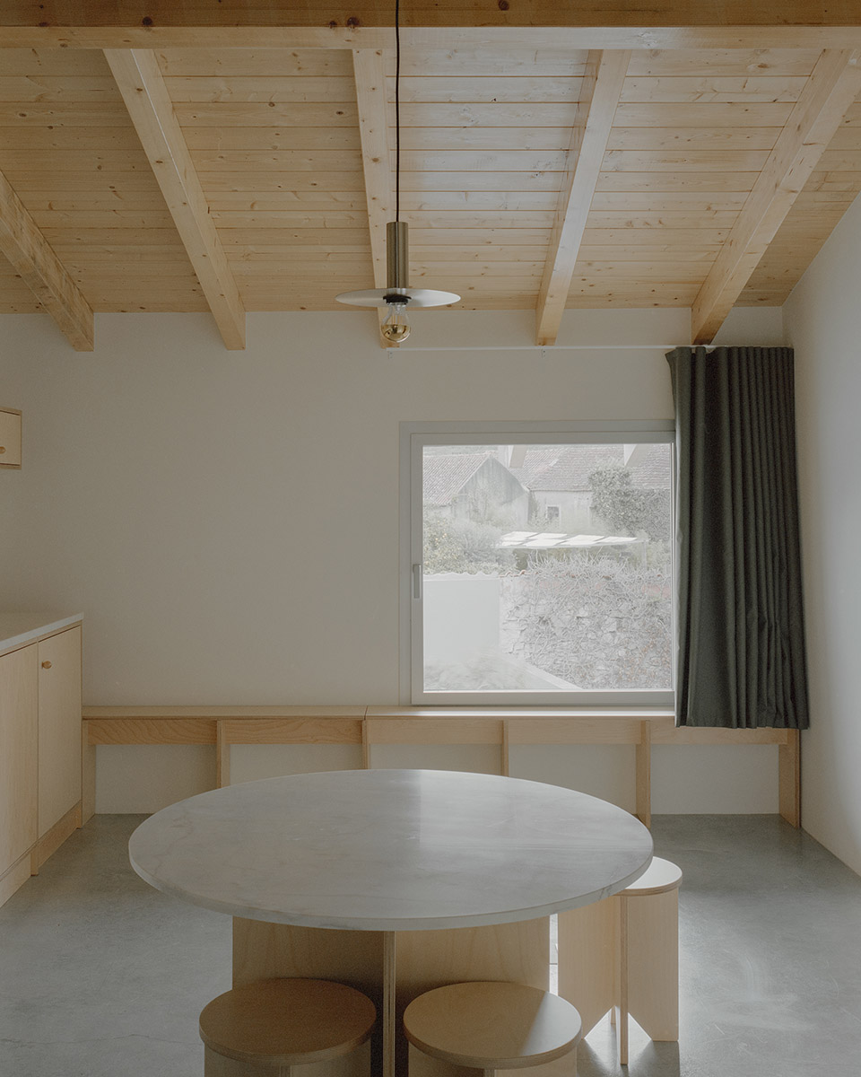 木材作为项目中的突出元素,呼应了传统葡萄牙旧建筑的布局。然而,其使用方式旨在创造一种轻微的视觉不和谐,既脱离了传统的常规,却又不破坏街道的整体和谐感。这种材料的应用,无论在结构还是内部细节上,都为空间带来了亲密与温馨的氛围。