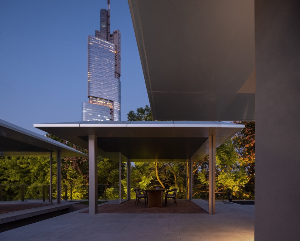 The courtyard enclosed by partition walls is an architectural external space with strong indoor characteristics. Therefore, when creating courtyards, many indoor materials are often used in the courtyard to create a feeling of bringing the indoor atmosphere outdoors. The three-dimensional spatial layers of the first floor form rich light and shadow changes, and also introduce a more diverse range of landscape elements, incorporating the existing trees and site atmosphere into the scope of the building facade and even the interior.