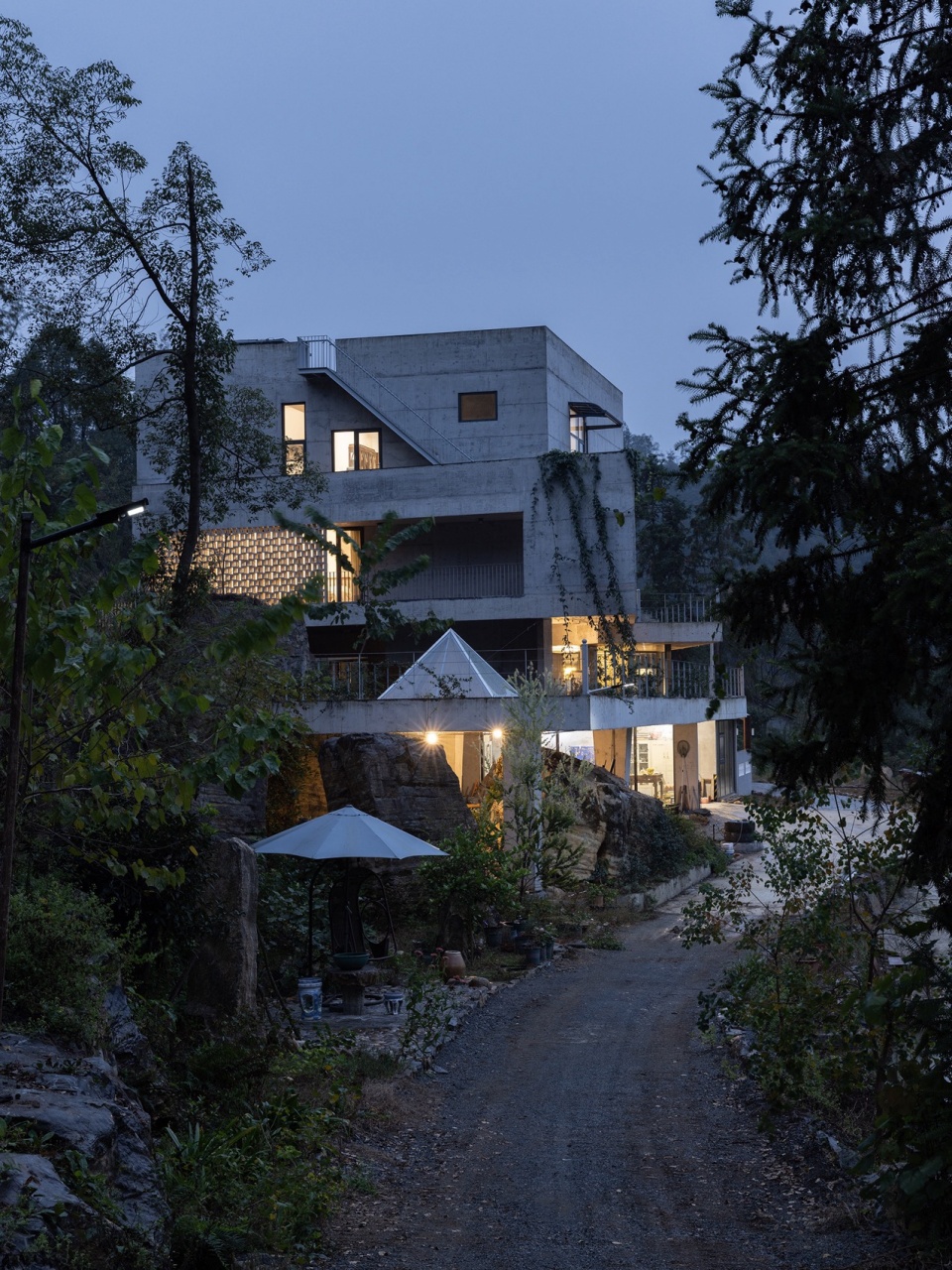 The project is located in Wuyanquan Town, Yidu City, Yichang, which is called Shiyangshan No. 1.The site is a quiet rural area 1.5 kilometers down the national highway. Located at the foot of Shiyang Mountain, the land with mountains on the back and forests on the front is the highest point of the surrounding terrain, which has a wide view of the horizon. The owner, Mr. Xu, and his wife hope to realize their dream of escaping the city and returning to the countryside on this piece of land.Shiyang Mountain is named after the many white stones on the mountain, which resemble sheep. During the rainy season, water flows down the hills, carrying away the soil from the bottom. The exposed part of the rock, after being washed by soil and rain and weathered for years, presents different layers to muddy yellow color. However the bare rocks are not tightly together, the client tried to slowly dig out the soil between them, revealing various sizes of “gaps”.