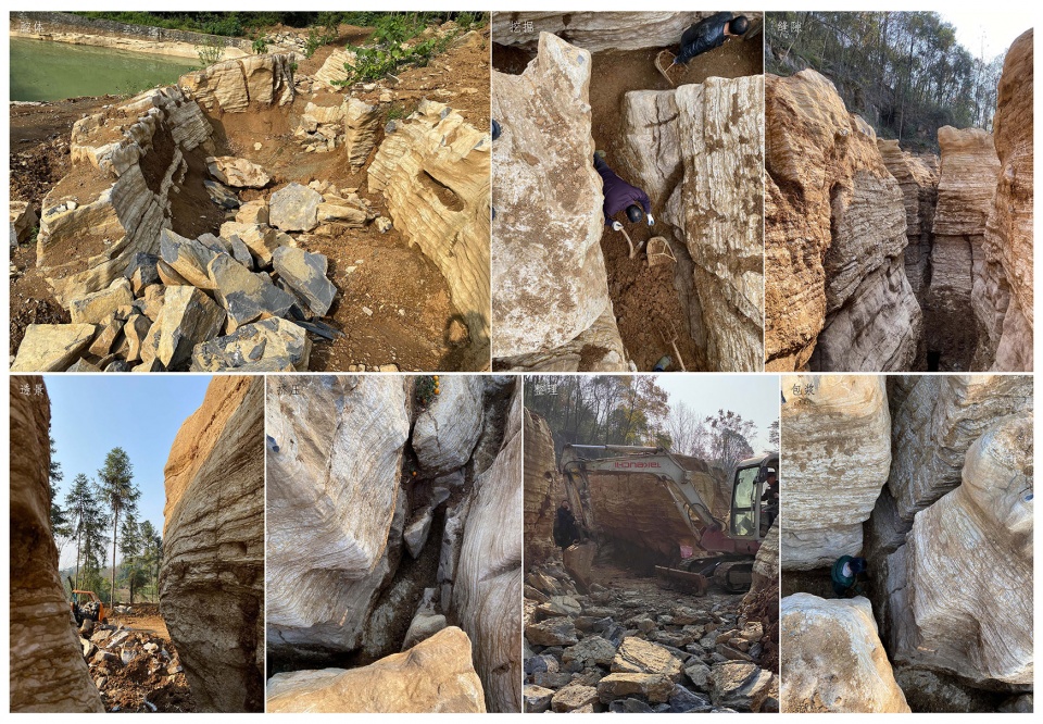 项目位于宜昌宜都市五眼泉镇,业主命名为石羊山壹号。场地是国道下道1.5公里处一片闹中取静的乡村,用地正在石羊山的山脚下,背山面林,是周围地形的高点,极目远眺,视野开阔。业主徐老师夫妇希望在这片土地上实现逃离都市,回归田园的梦想。石羊山,山多白石,状类如羊,故名。雨季,水从山上冲刷下来,带走山脚下部的泥土。裸露出部分岩石,经过泥土和雨水的冲刷,常年的风化,呈现出有层次的泥黄色。岩石之间并未紧贴在一起,业主尝试慢慢挖去中间的泥土,可以裸露大小不一的“缝隙“,成为场地无法回避的“奇观”。